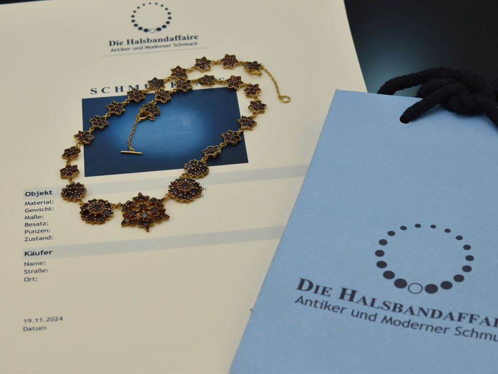 Entstanden ist das böhmische Granatcollier um 1900. Es ergänzt sowohl den klassischen Kleidungsstil als auch Tracht und Dirndl auf besonders stilvolle Art und Weise.