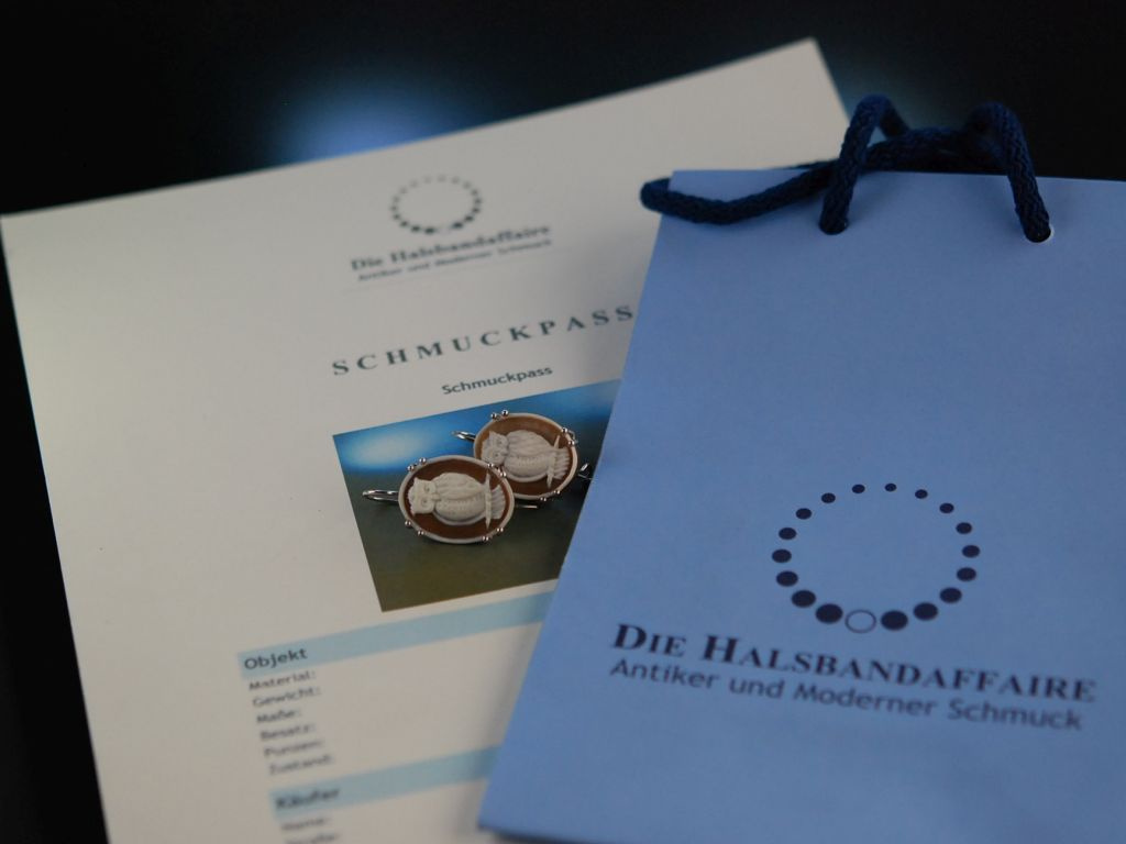 Maße der Ohrringe (inklusive Brisur): 3,4 x 1,9 cm. Maße der Kameen: ca. 2,5 x 1,9 cm. Gesamtwicht: zus. 6,0 Gramm. Zustand: Neu. Siehe Fotos.