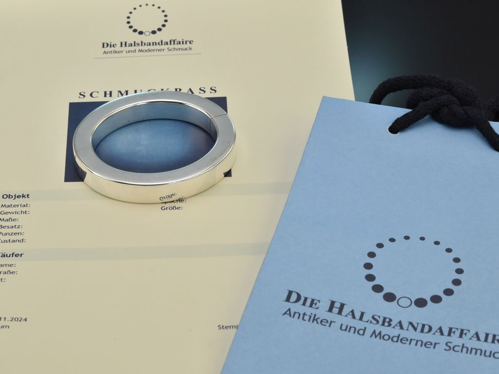 Der Armreif entstand um 1985 im Traditionshaus Quinn, das 1903 von Franz Scheurle, anfangs unter dessen Namen, in Schwäbisch Gmünd als Silberwarenfabrik gegründet wurde. Unter der Leitung seines Sohnes Gerhard Scheurle produzierte man ab den 60er-Jahren Schmuck, zunächst nur für Herren, später unter Franz Scheurle junior auch Damenschmuck. Man orientierte sich dabei vor allem am skandinavischen und finnischen Design, das sich durch einfache, geradlinige Entwürfe auszeichnet. Gegen Anfang der 70er-Jahre wurde die Firma in Quinn umbenannt und sie befindet sich nach wie vor in Familienbesitz.