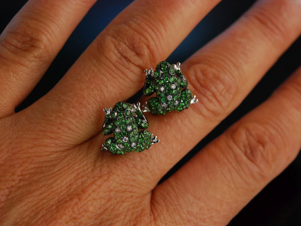 Diamanten, zusammen ca. 0,1 ct. Die kecken Frösche sitzen durch