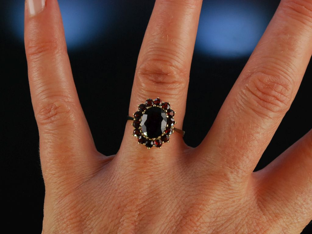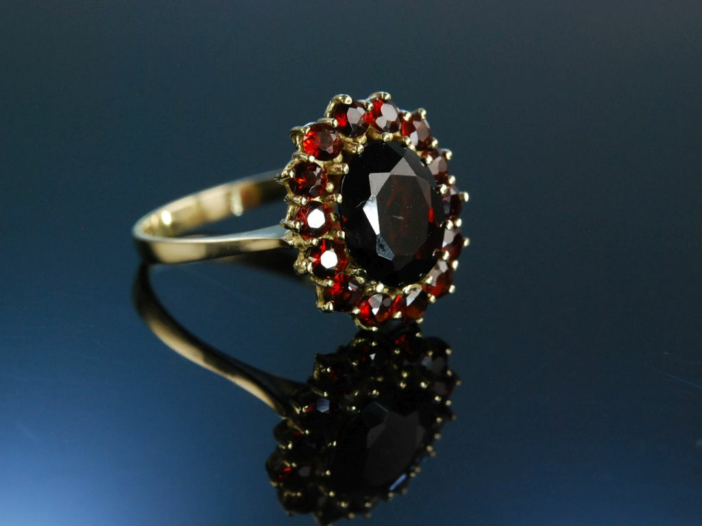 Wunderschön rot funklender Trachtenring / Ring aus Gelbgold 333 / 8 Kt