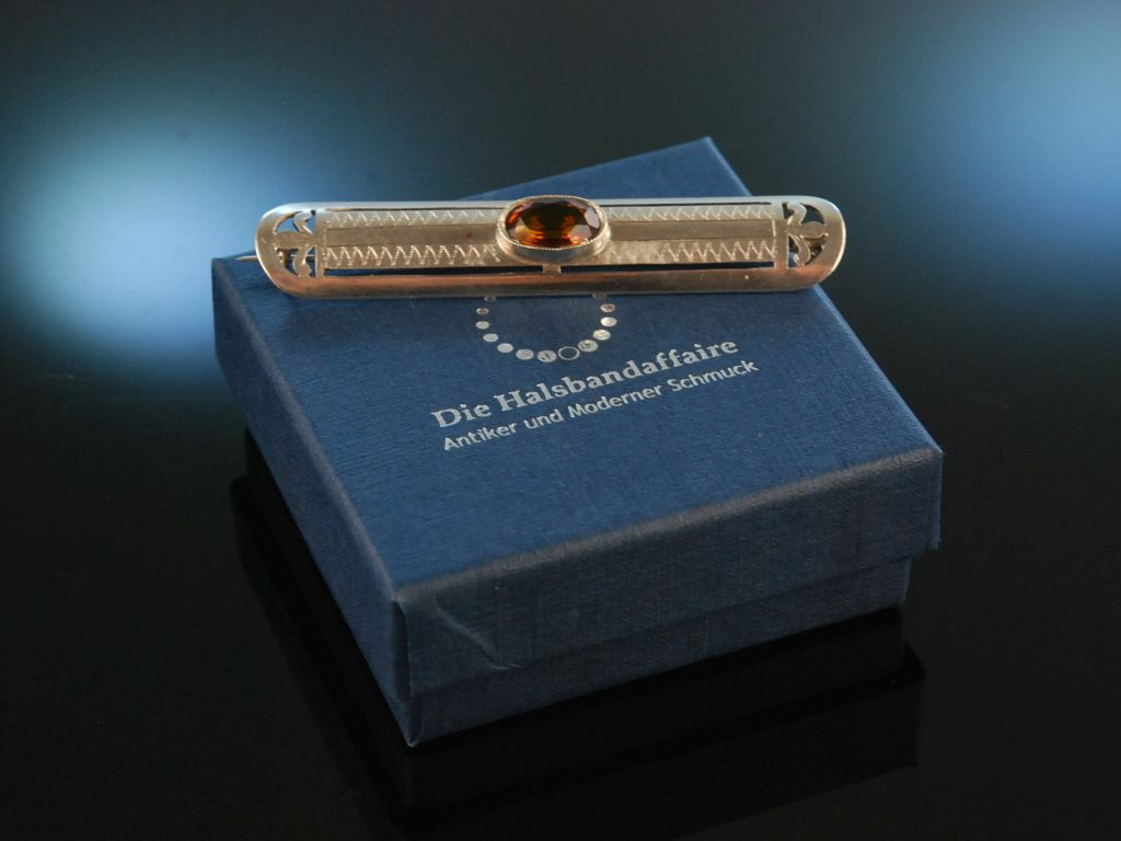 Die lange historische Brosche mit ihrem zeittypisch reduzierten Stil entstand um 1930 und ist auch heute noch ein wundervolles Accessoire zu vielen verschiedenen Stilen.