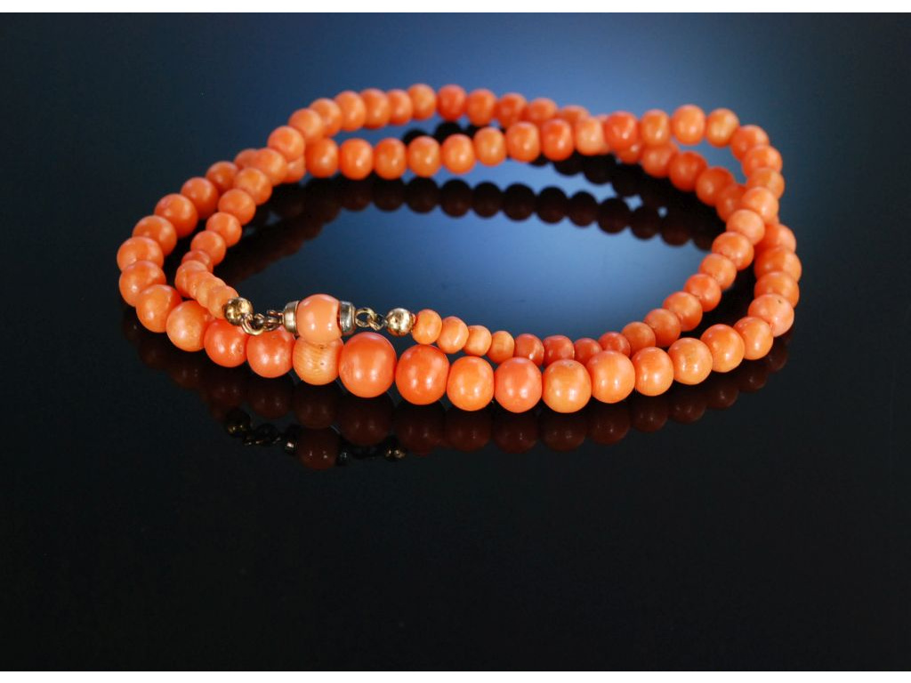 Größenverlauf angeordnet. Die Korallenperlen sind von schöner Lachsfarbe,