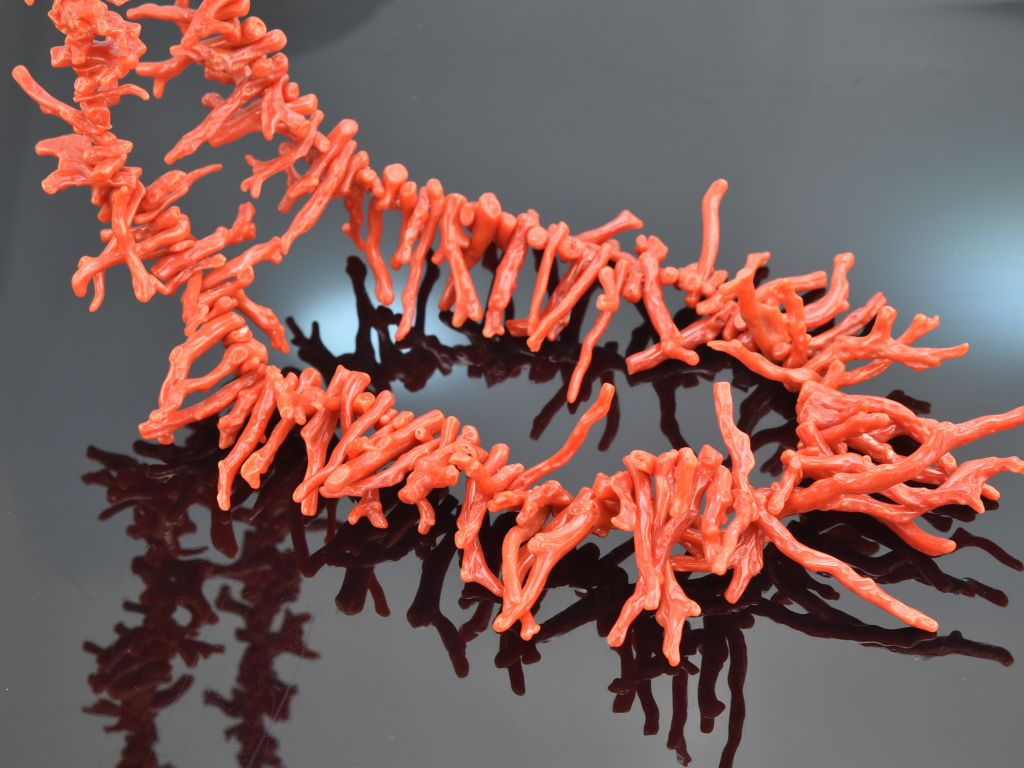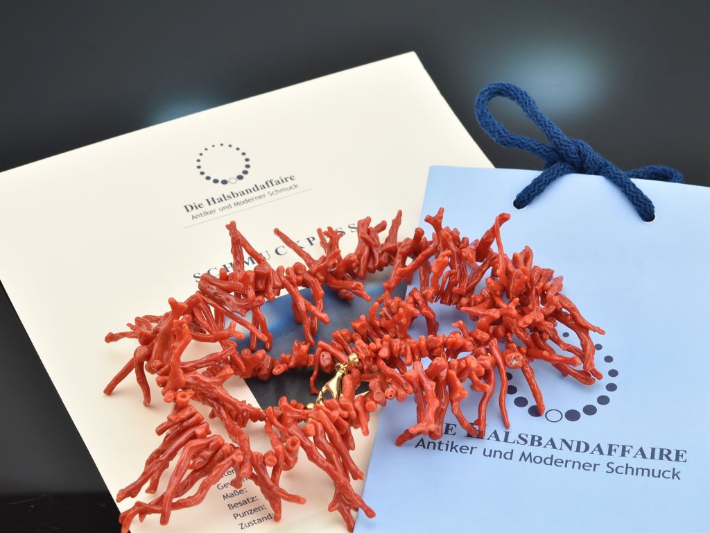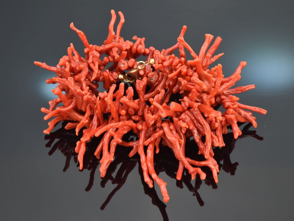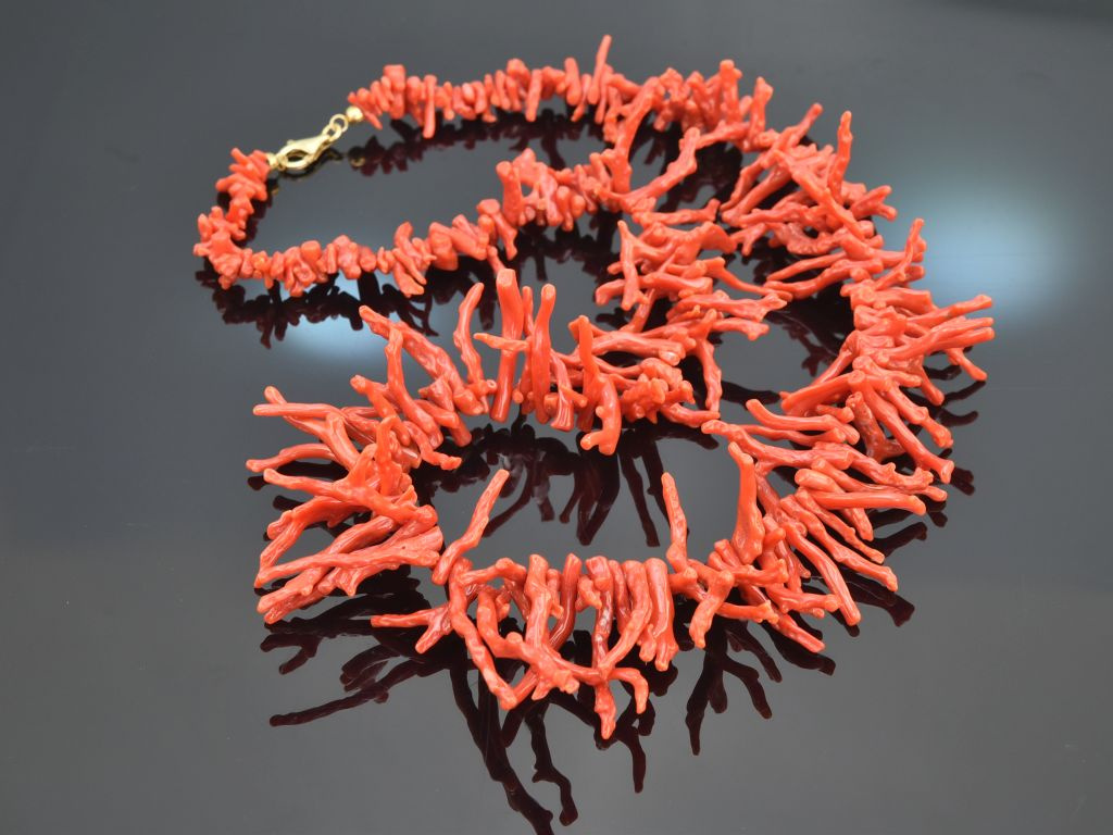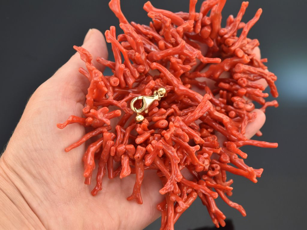 Große italienische Ast-Korallen Kette mit einer Schließe aus vergoldetem Silber (gestempelt und garantiert)