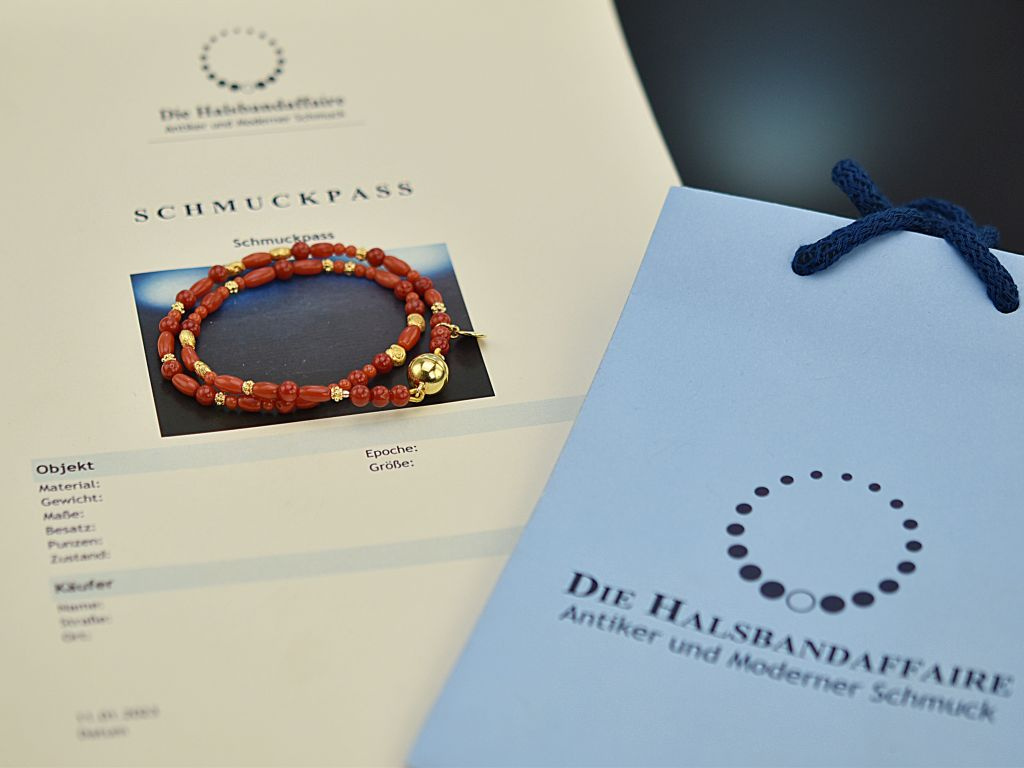 Das Armband besteht aus glänzend polierten Kugeln und Tönnchen aus intensiv roter, unbehandelter Mittelmeerkoralle. Die eingearbeiteten Zierelemente aus vergoldetem Sterlingsilber setzen hübsche Akzente.
