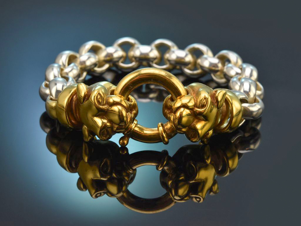 Das Panthermotiv steht für Anmut und Stärke und ist spätestens seit den berühmten Kreationen von Cartier ein beliebtes Motiv im Schmuckdesign. Unser Armband entstand um 1980 und passt zu vielen unterschiedlichen Outfits und ist außerdem noch bestens als symbolträchtiges Geschenk geeignet.