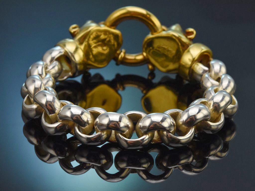 Schickes 80er Statement Armband mit vergoldeten Pantherköpfen, gearbeitet aus Silber 925 (gestempelt und garantiert).