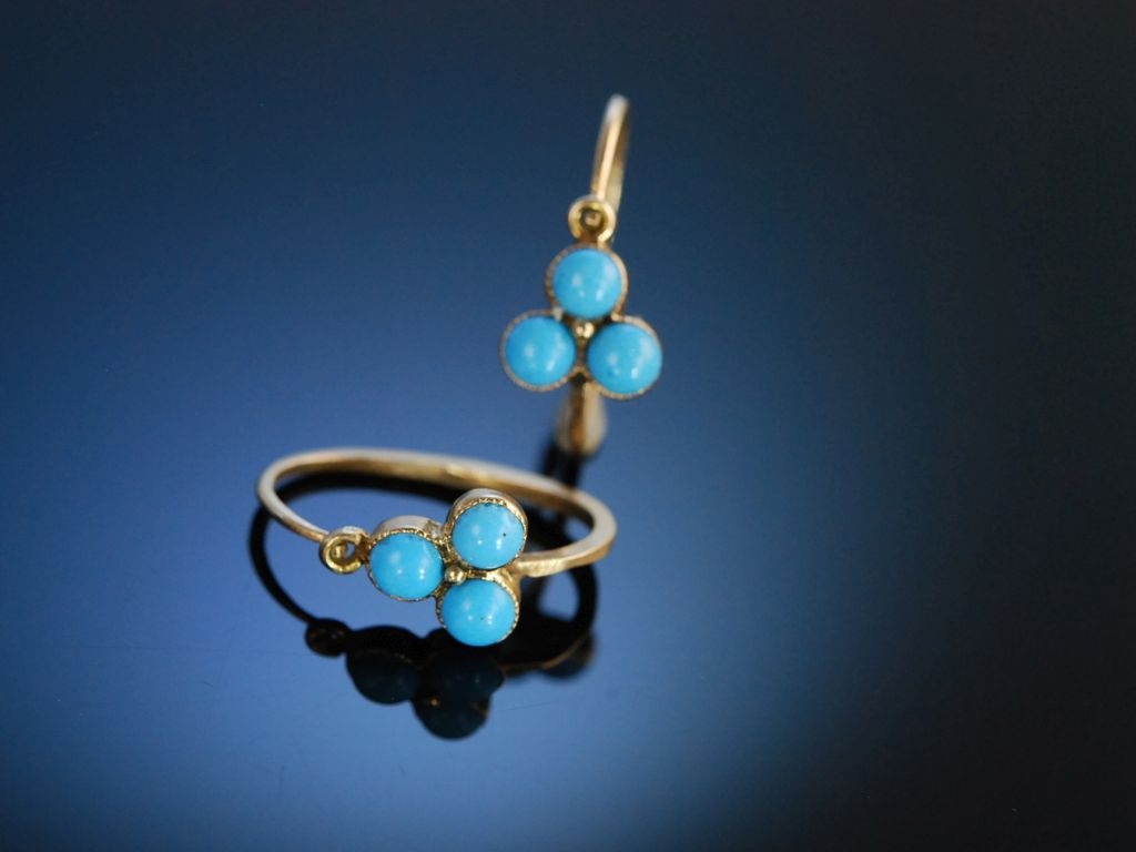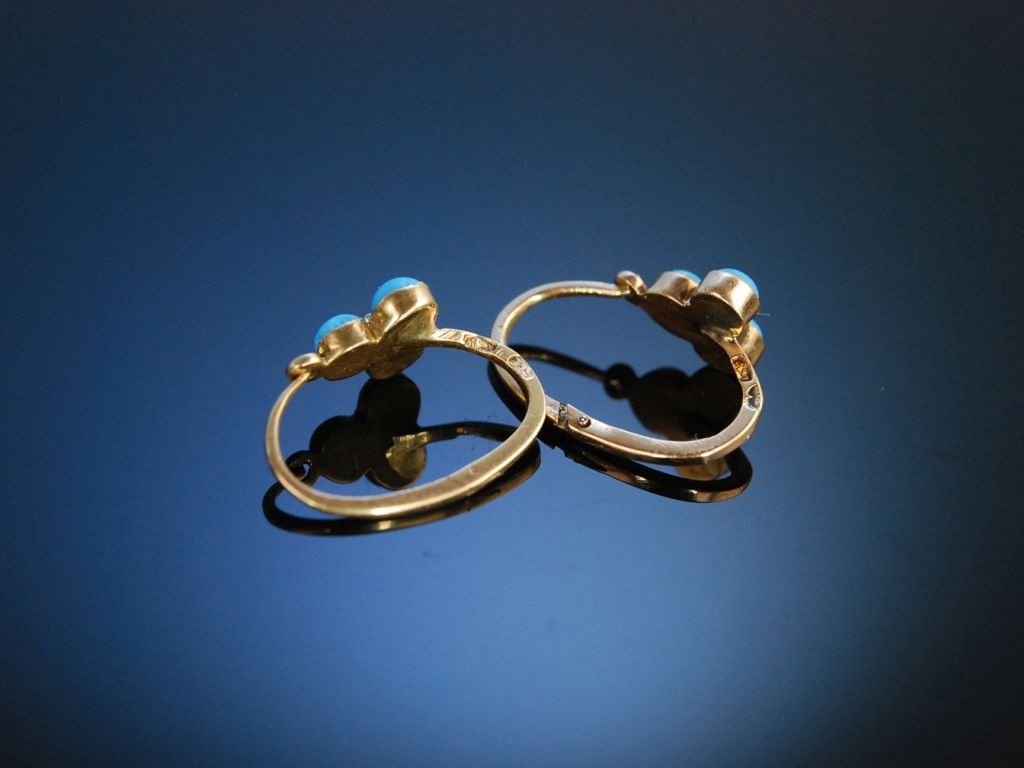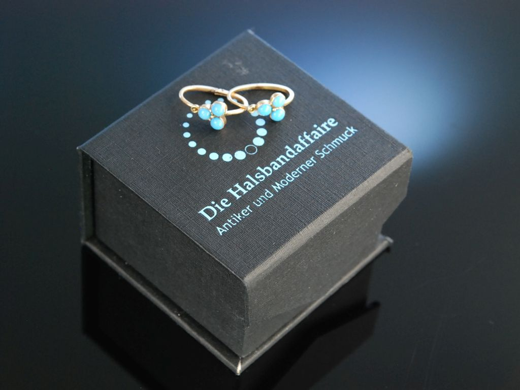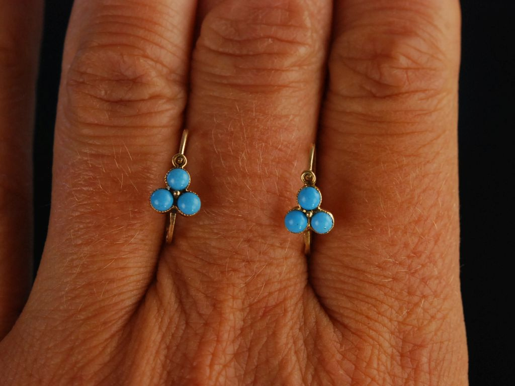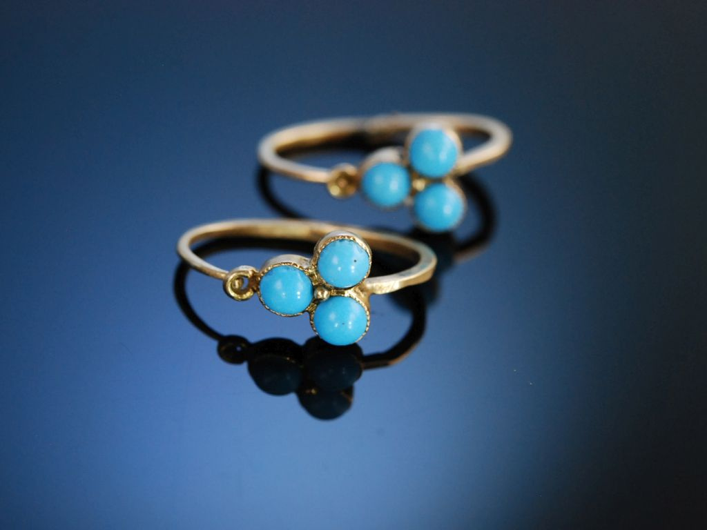 Ohrhänger sind mit jeweils drei kleinen Türkisen in Cabochonschliff