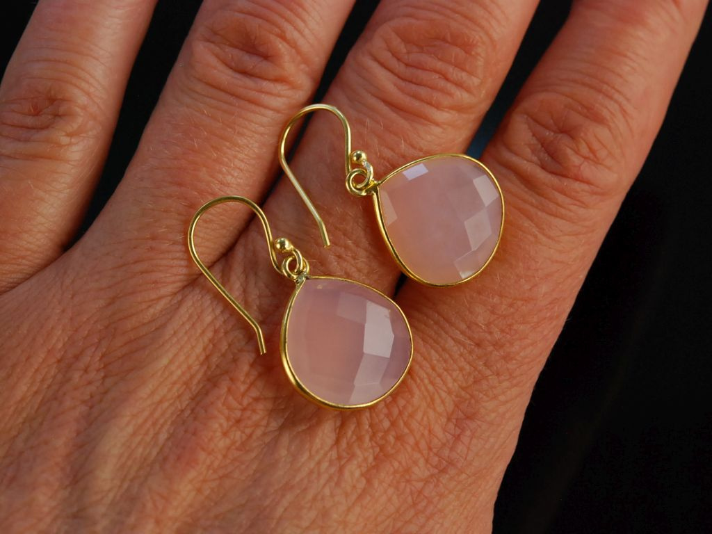 Tropfenform und in Schachbrettschliff. Die Ohrringe haben Hakenbrisuren und