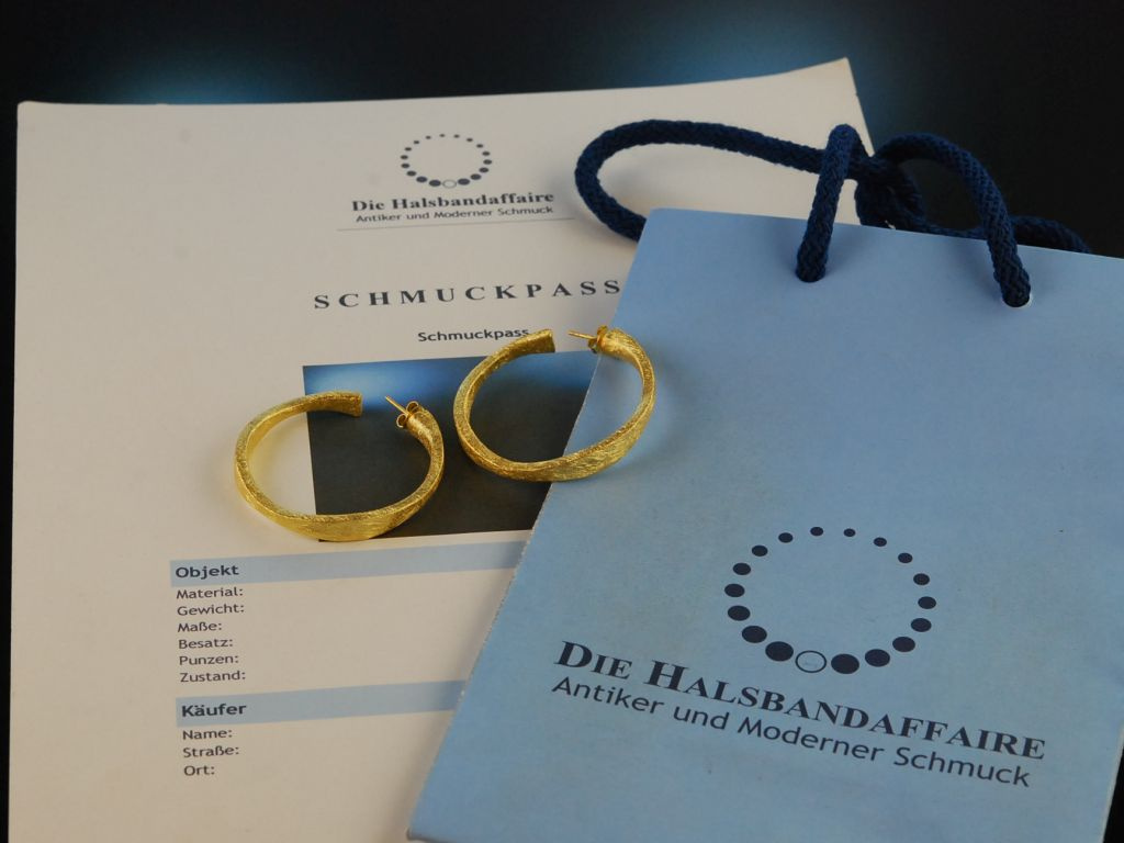 Durchmesser der Creolen: 4,5 cm. Breite: 3,2 - 6,5 mm. Gewicht: zus. 11,3 Gramm. Zustand: Neu, siehe Fotos.