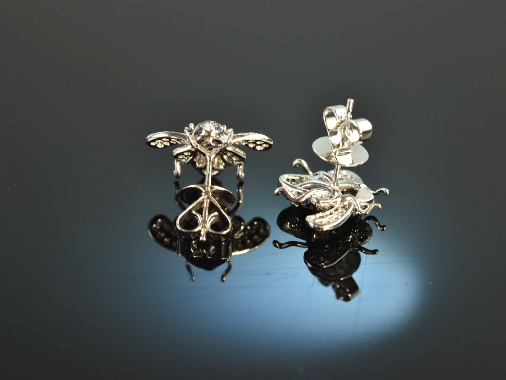 Charmante Ohrstecker aus Weißgold 750 / 18 Kt (gestempelt und garantiert) in Form zweier Bienen.