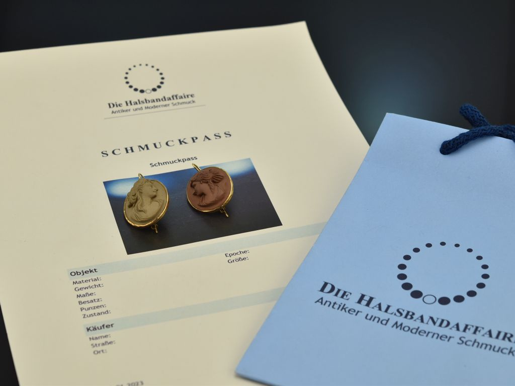 Bitte beachten Sie: Bei Vintage- bzw. Antikschmuckstücken handelt es sich um getragene Objekte, die aufgrund ihrer Historie leichte Tragespuren aufweisen können.