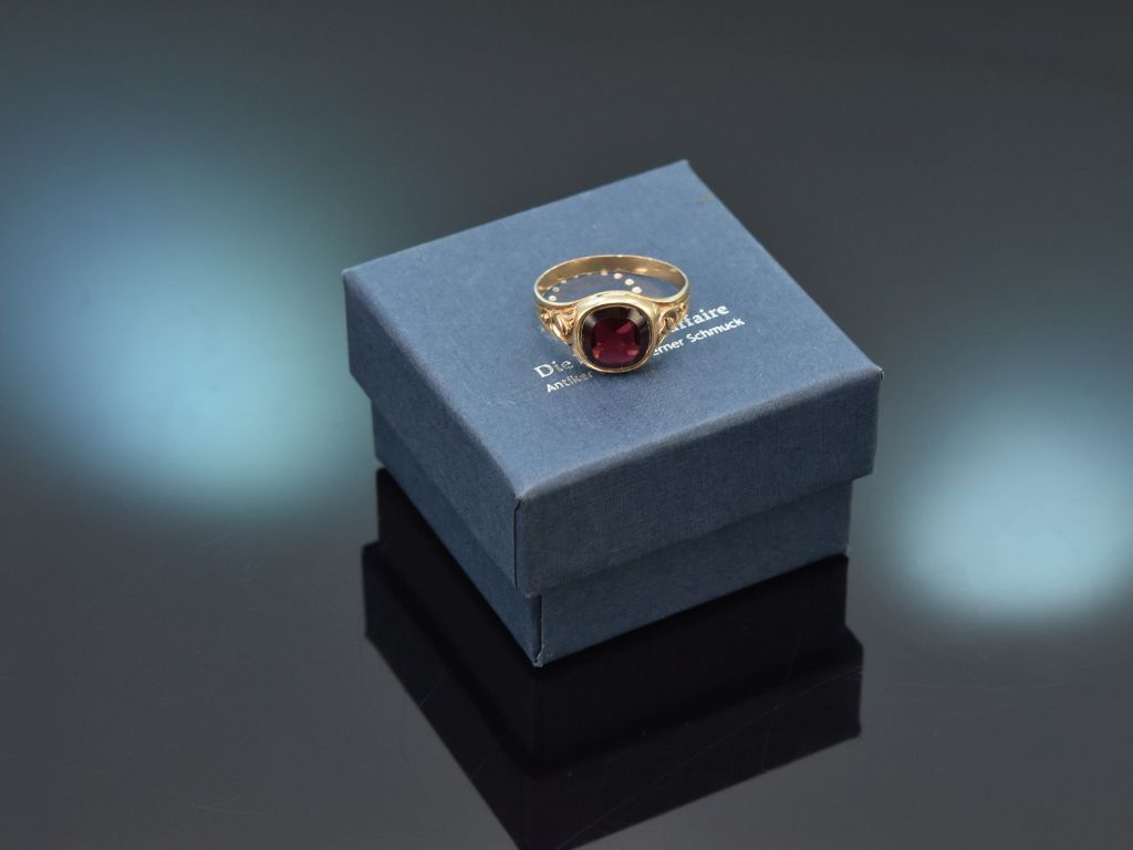 Historischer Wiener Granat Ring, gearbeitet aus Gelbgold 585 / 14 Kt (geprüft und garantiert).