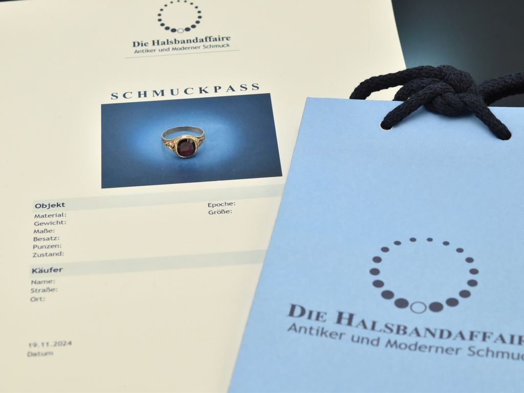 Bitte beachten Sie: Bei Vintage- bzw. Antikschmuckstücken handelt es sich um getragene Objekte, die aufgrund ihrer Historie leichte Tragespuren aufweisen können.