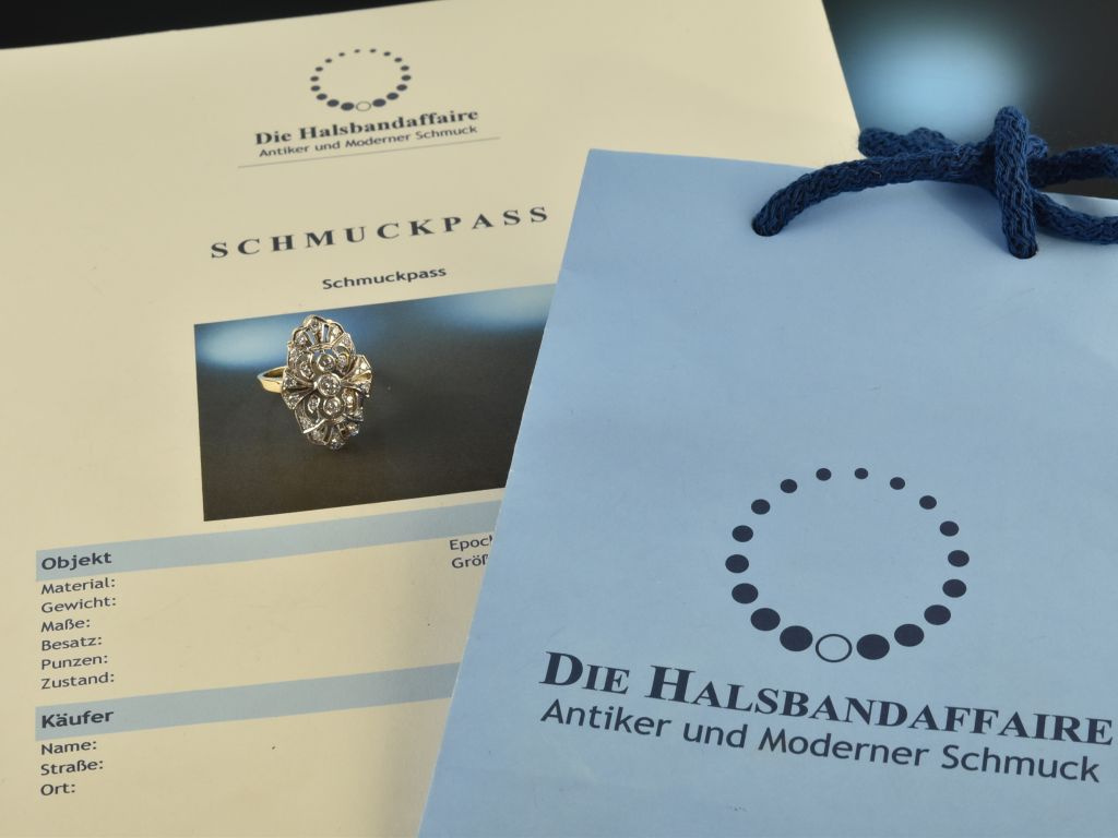 Bitte beachten Sie: Bei Vintage- bzw. Antikschmuckstücken handelt es sich um getragene Objekte, die aufgrund ihrer Historie leichte Tragespuren aufweisen können.