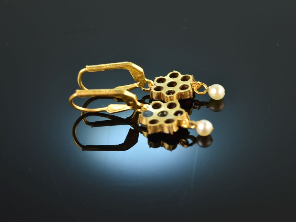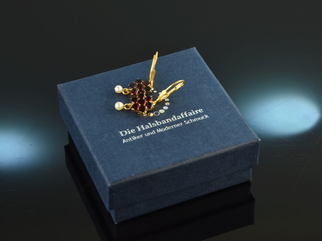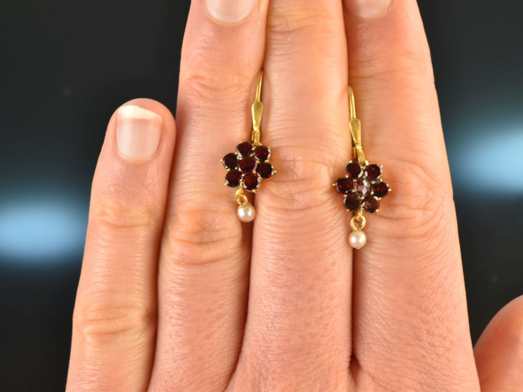 Wunderschöne Granat Trachten Ohrringe mit Perle Silber vergoldet