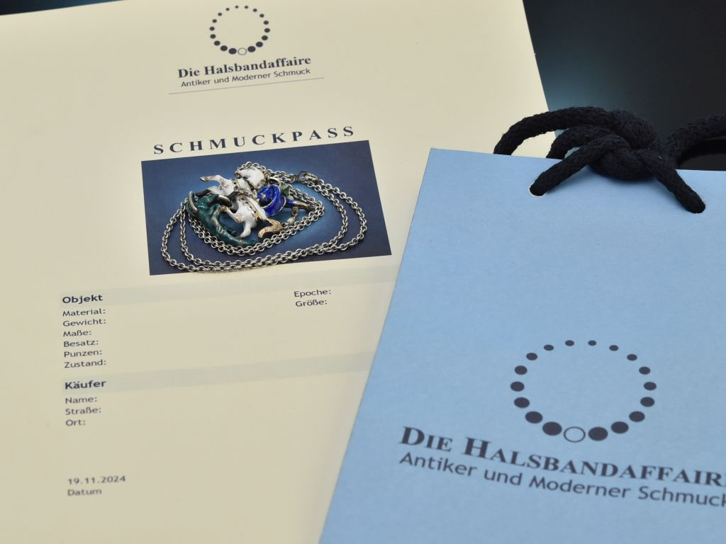 Bitte beachten Sie: Bei Vintage- bzw. Antikschmuckstücken handelt es sich um getragene Objekte, die aufgrund ihrer Historie leichte Tragespuren aufweisen können.