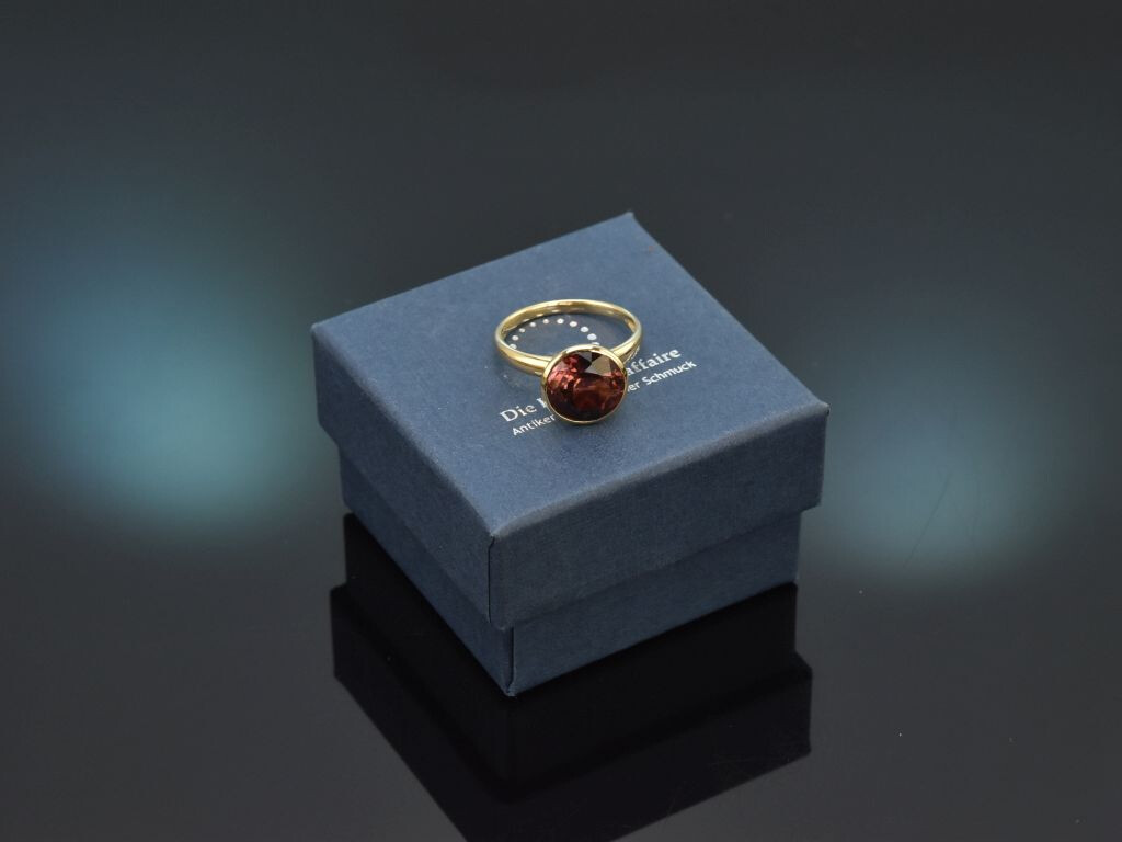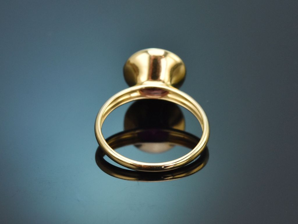 Puristischer Statement Design Ring mit großem brombeerfarbenen Turmalin, gearbeitet aus Gelbgold 585 / 14 Kt (gestempelt und garantiert).