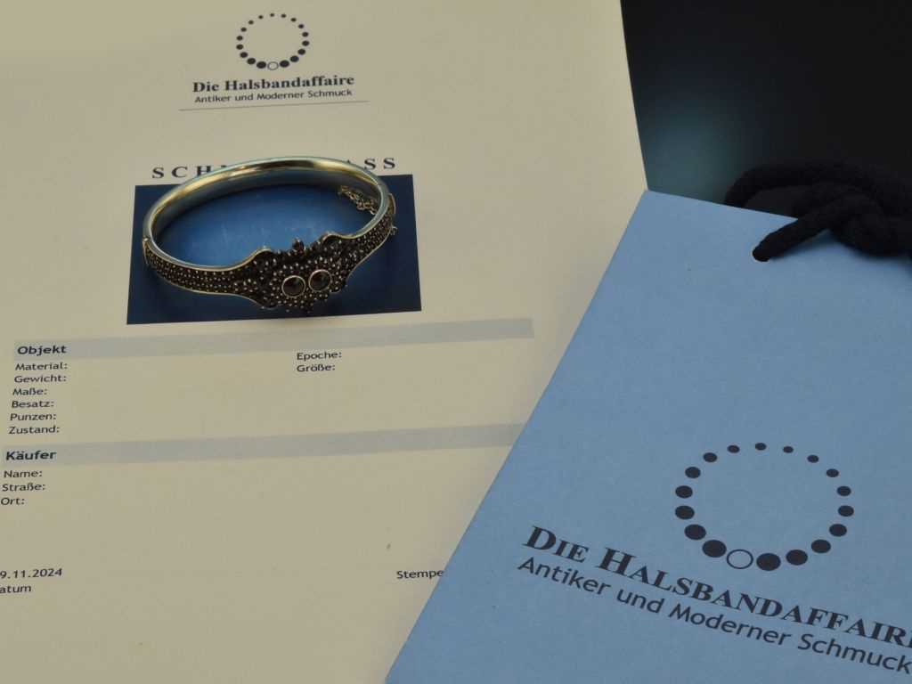 Bitte beachten Sie: Bei Vintage- bzw. Antikschmuckstücken handelt es sich um getragene Objekte, die aufgrund ihrer Historie leichte Tragespuren aufweisen können.