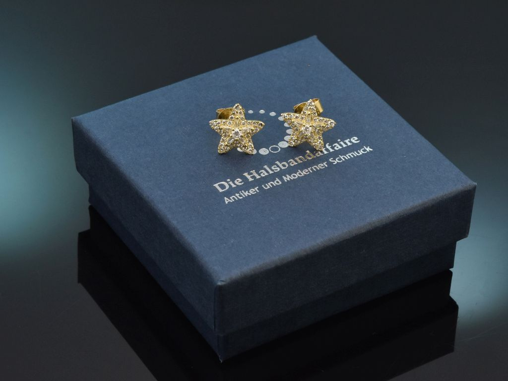Sternförmige Ohrringe besetzt mit 0,76 ct Diamanten, gearbeitet aus Gelbgold 750 / 18 Kt (gestempelt und garantiert).
