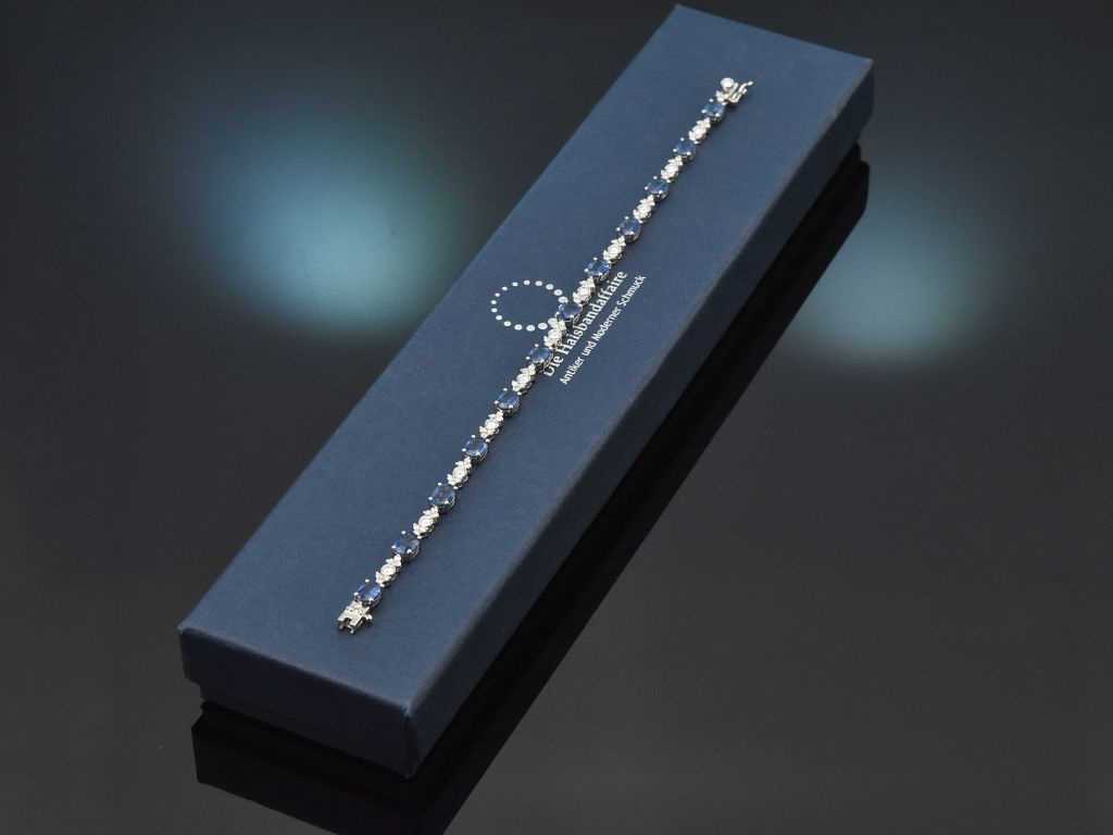 Edles Klassisches Saphir Armband mit Diamanten, gearbeitet in Weißgold 750 / 18 Kt (gestempelt und garantiert).