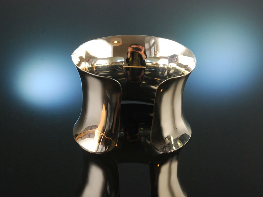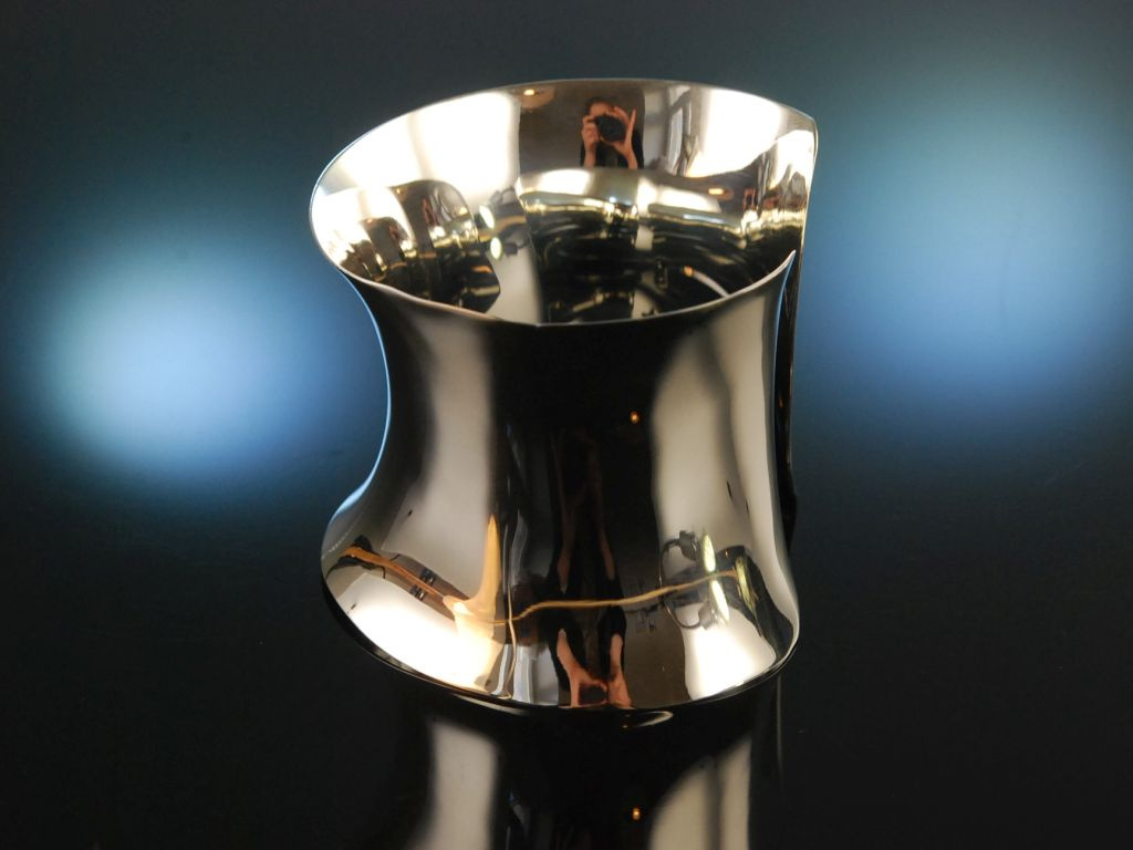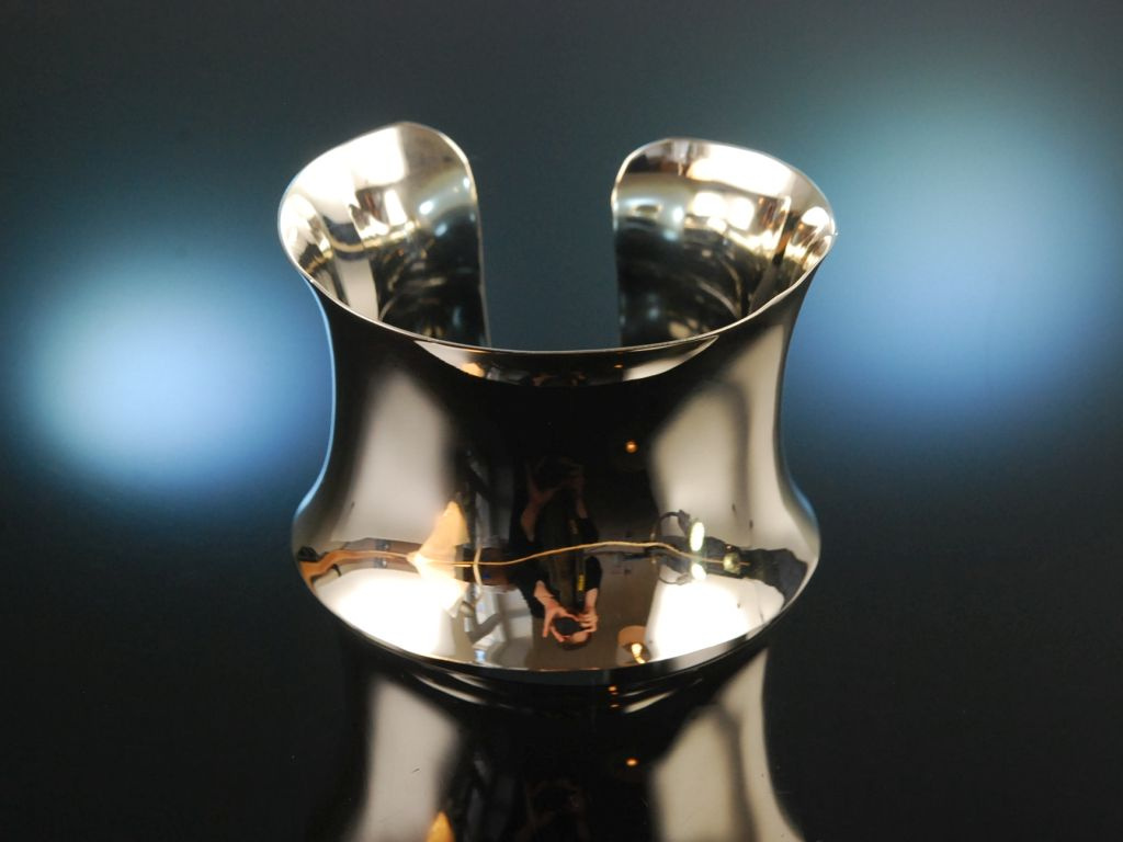 Cool solid bracelet in polished sterling silver 925 (stamped and guaranteed). The stylish wide hoop convinces with its elegant design in a curved shape and is worked without a lock. It can be easily slipped over the wrist through an opening.