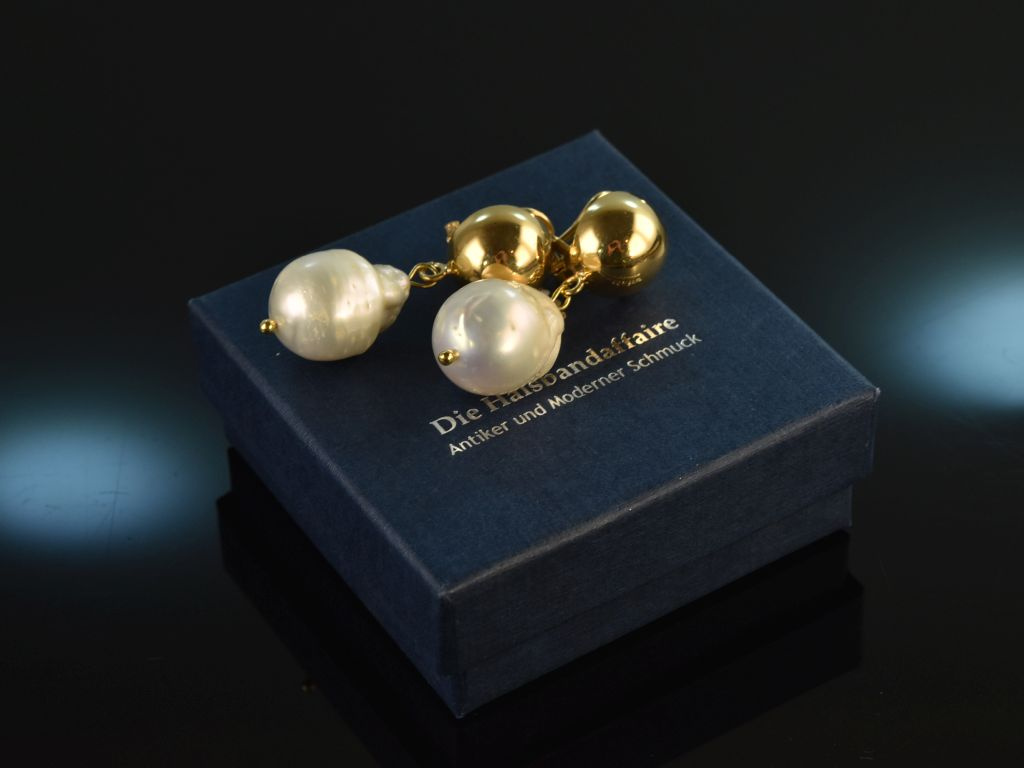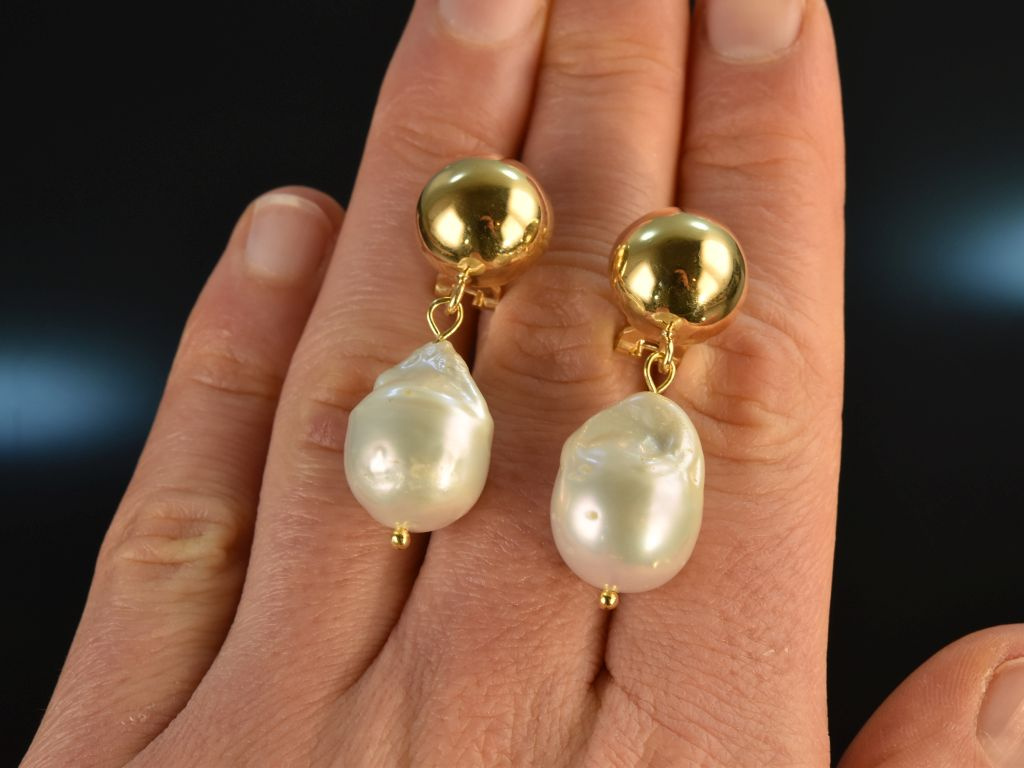 Wonderful pair of earrings with large baroque pearls in gold plated sterling silver 925 (stamped and guaranteed).