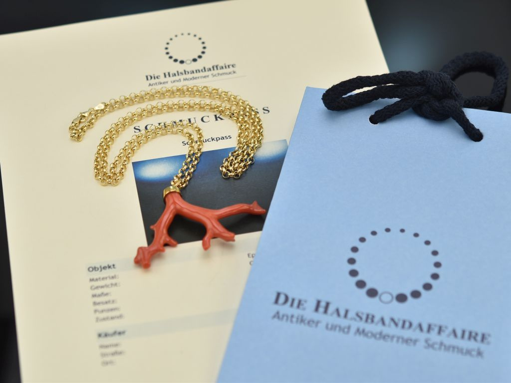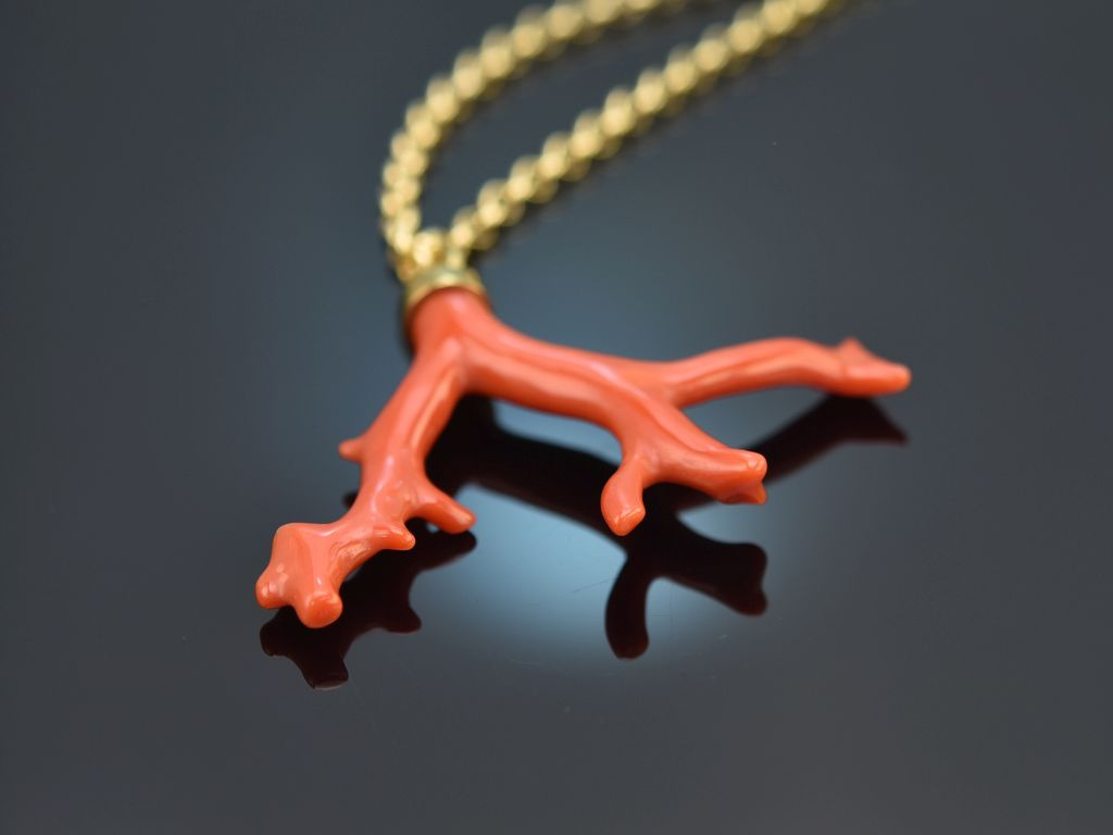The beautifully grown coral branch is made from genuine, naturally grown and untreated Mediterranean coral. It is attached to a long pea chain with a large eyelet. The chain has a lobster clasp and can therefore be easily opened and closed again.