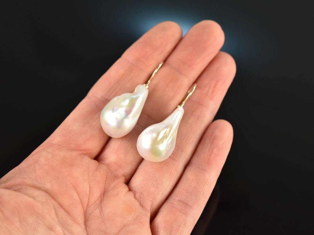 Large baroque cultured pearl earrings from our workshop, made of yellow gold 585 / 14 Kt (tested and guaranteed)