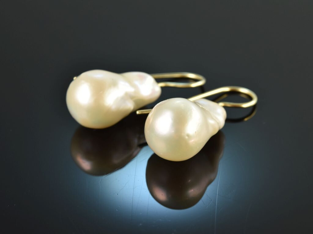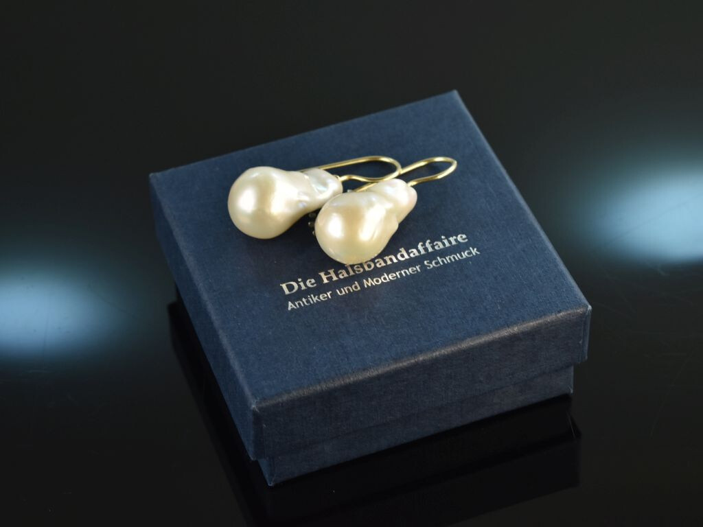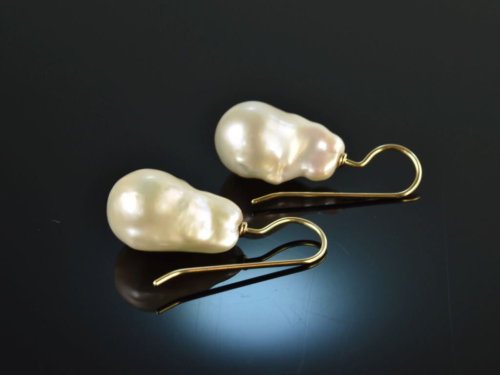 Large baroque cultured pearl earrings from our workshop, made of yellow gold 585 / 14 Kt (tested and guaranteed)