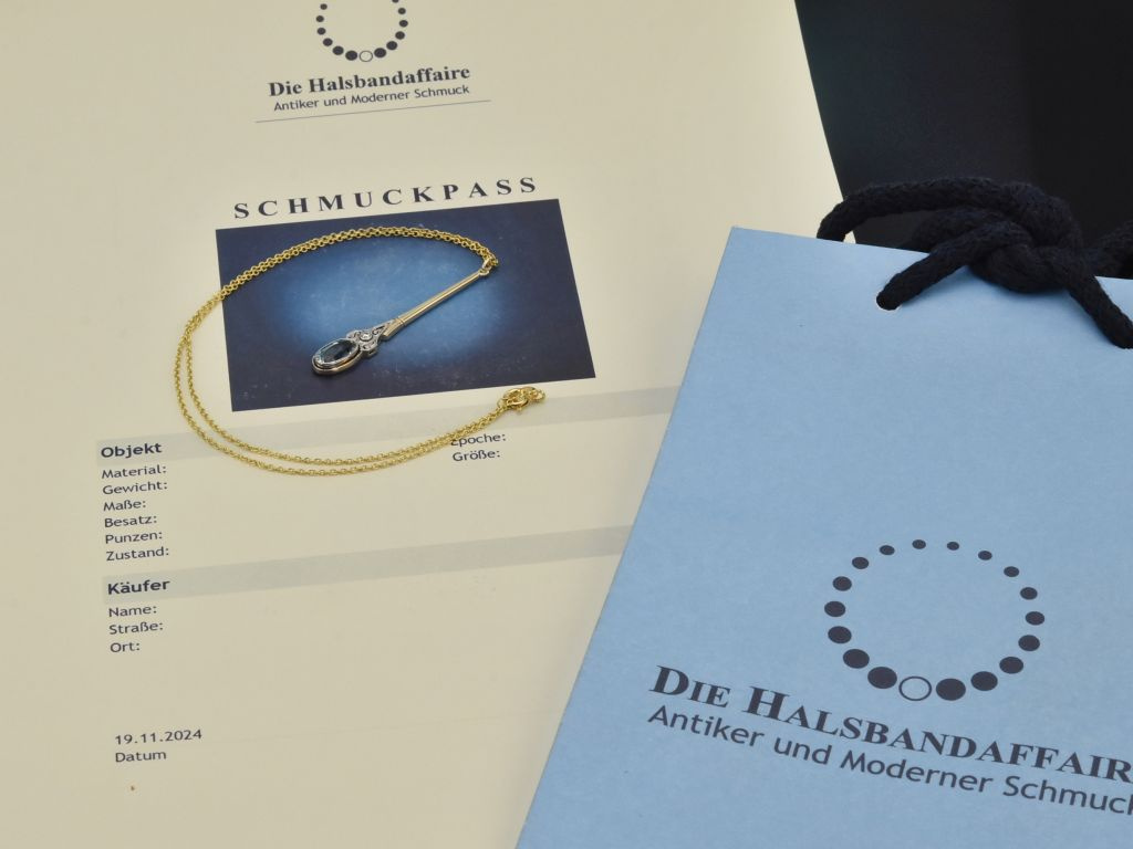 Dimensions of the pendant (including bail): ca. 5.4 x 0.8 cm.