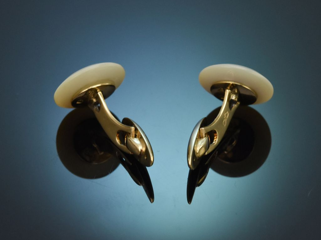 Elegant pair of antique cufflinks made of mother-of-pearl and 585/14 carat yellow gold (stamped and guaranteed).