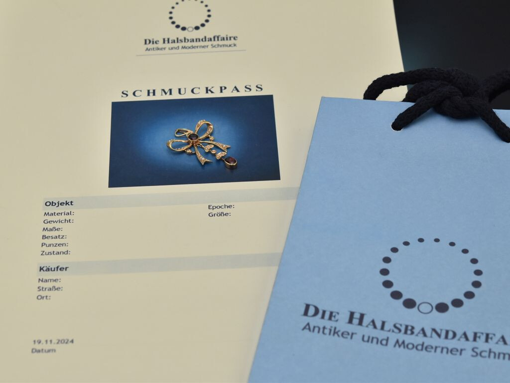 The charming pendant was created around 1950 and is an extremely feminine piece of jewellery that can be combined in many ways and stylishly complements both elegant and everyday outfits.