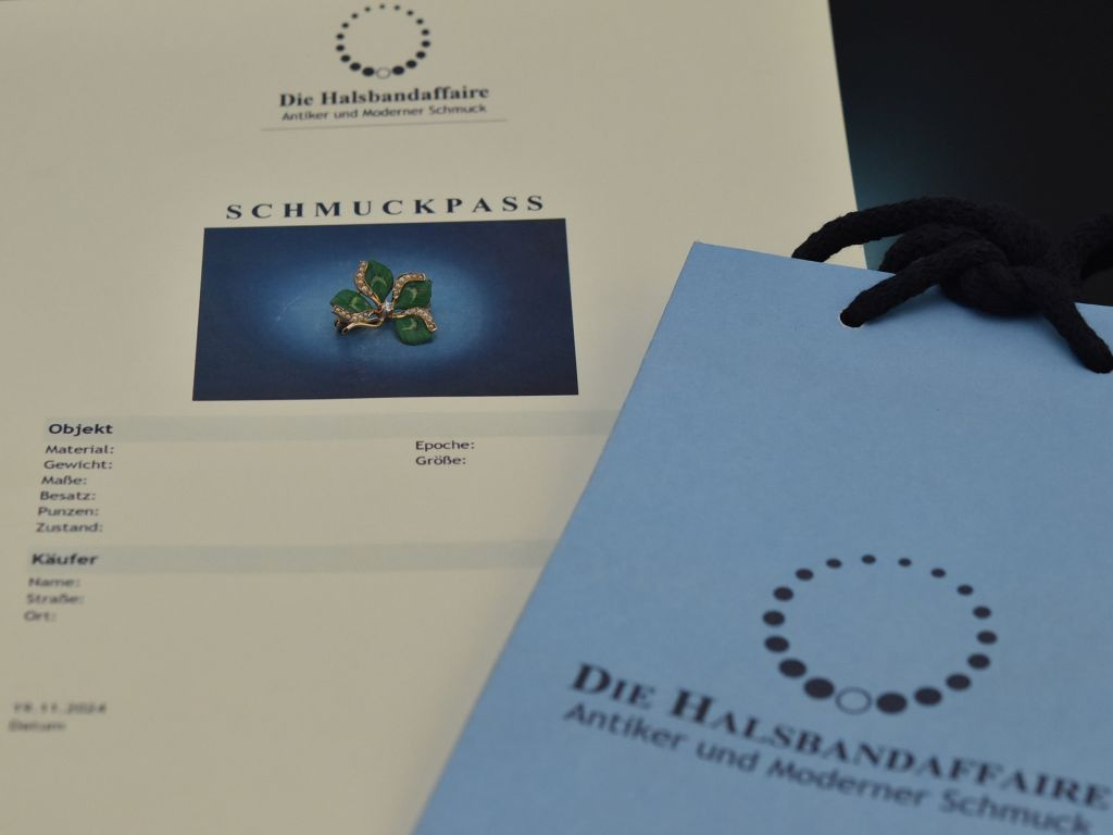 The historical brooch was created around 1900 and originates from Berlin. It captivates with its charming and detailed design. In addition, the cloverleaf motif is a popular lucky charm, making it a wonderful gift!