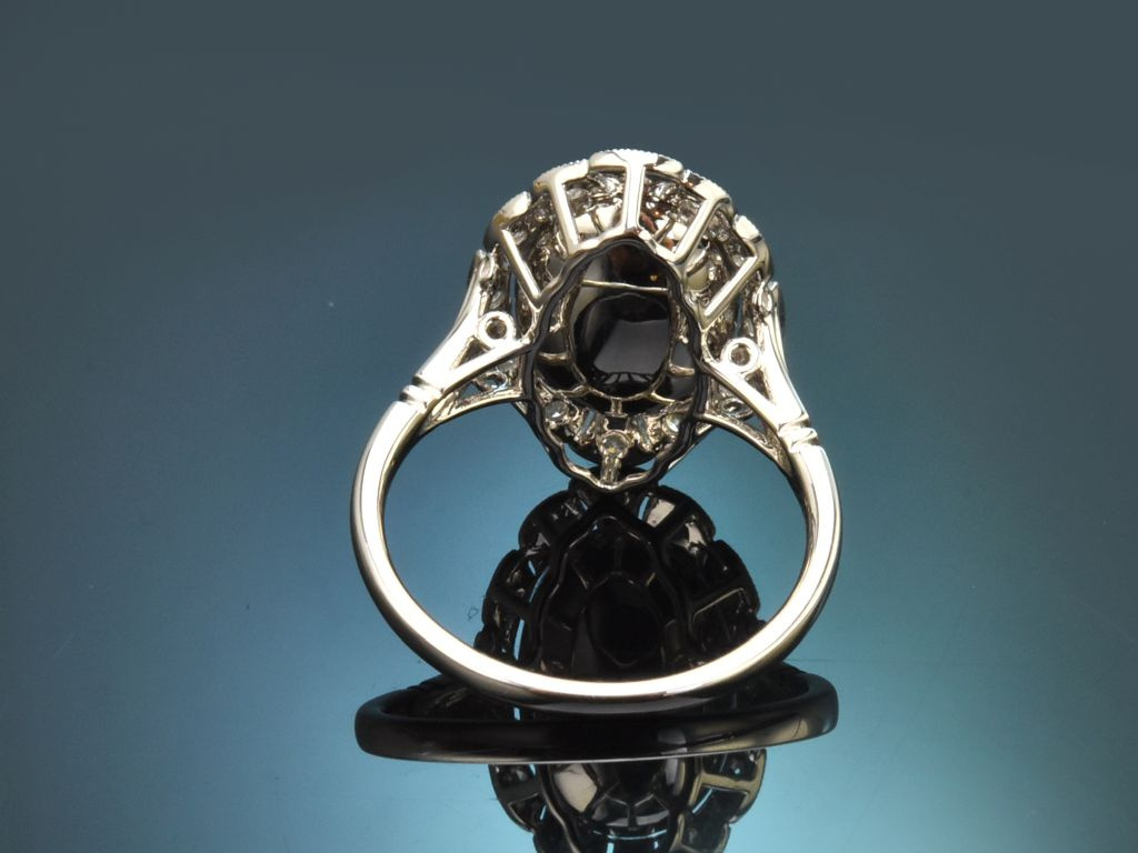 This opulent ring is crafted in our workshop, drawing on the stylistic preferences of the Belle Époque and bringing them into the 21st century in the form of a high-quality design with a historical and timeless spirit. It is therefore ideal for special occasions such as weddings, parties and celebrations.