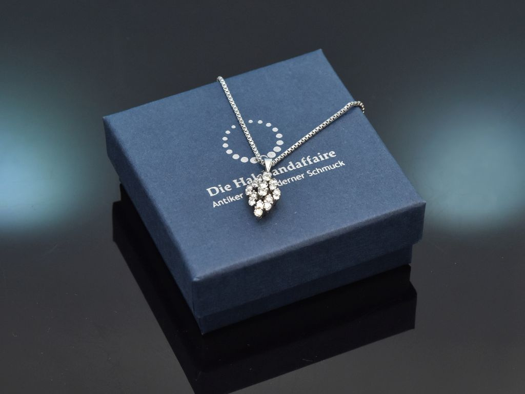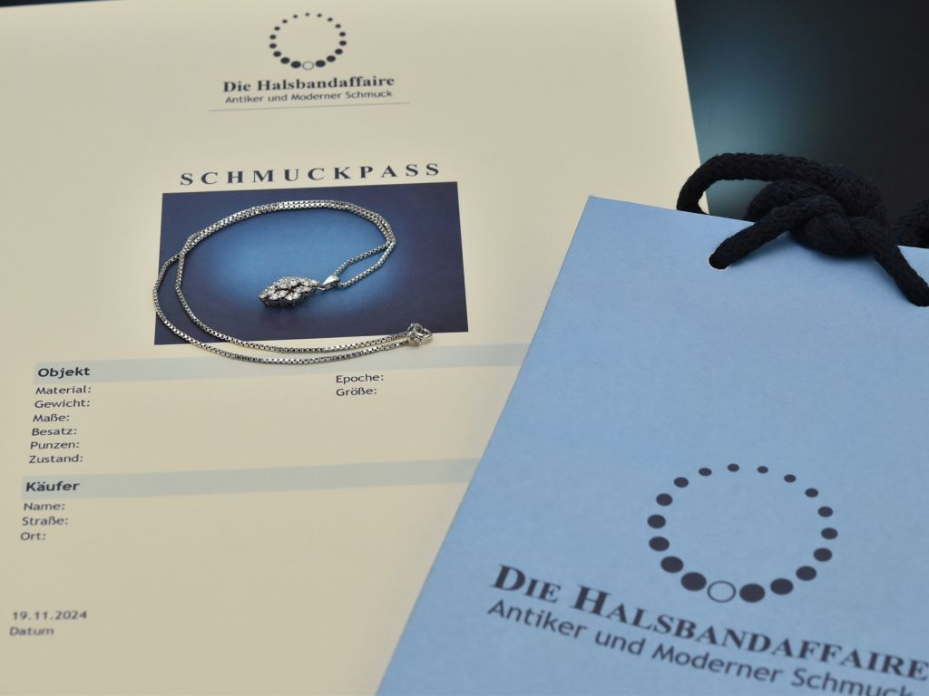 Elegant vintage diamond pendant with matching chain, both crafted from 585/14K white gold (hallmarked and guaranteed).