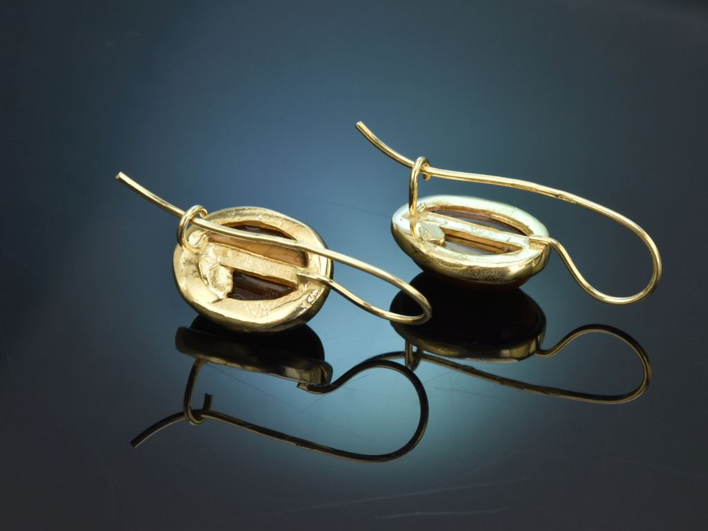 Distinctive Italian earrings with tiger's eye, crafted from gold-plated 925 silver (stamped and guaranteed).
