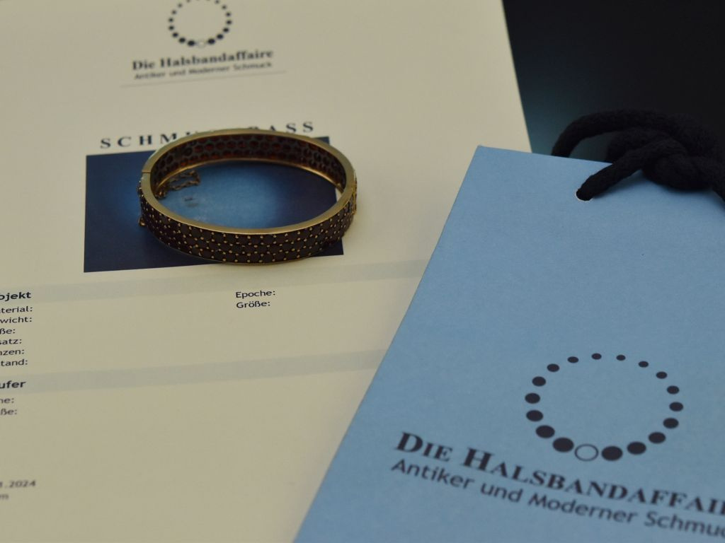 The antique bangle was made around 1910 in Linz, Austria. As a timeless piece of jewellery, it complements traditional costumes and dirndls in a particularly harmonious way and lends every ensemble an elegant, tasteful touch.