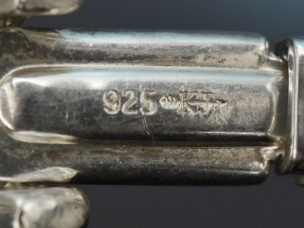 This striking bangle was created around 1970 in Pforzheim and comes from the Kollmar & Jourdan company. The long-established firm was founded in 1885 by the merchant Emil Kollmar (1860–1939) and the guilloche artist Wilhelm Jourdan (1855–1925), and initially produced watch chains by hand. Gradually, the company became one of Germany’s largest jewellery firms and distributed its products worldwide. In the 1960s and 1970s, the company made a name for itself with the production of sleek, stylish silver pieces. The Art Nouveau factory building, which the company moved into in 1902, still stands today and has been preserved as a listed architectural gem of the city of Pforzheim under the name Kollmar & Jourdan Haus.