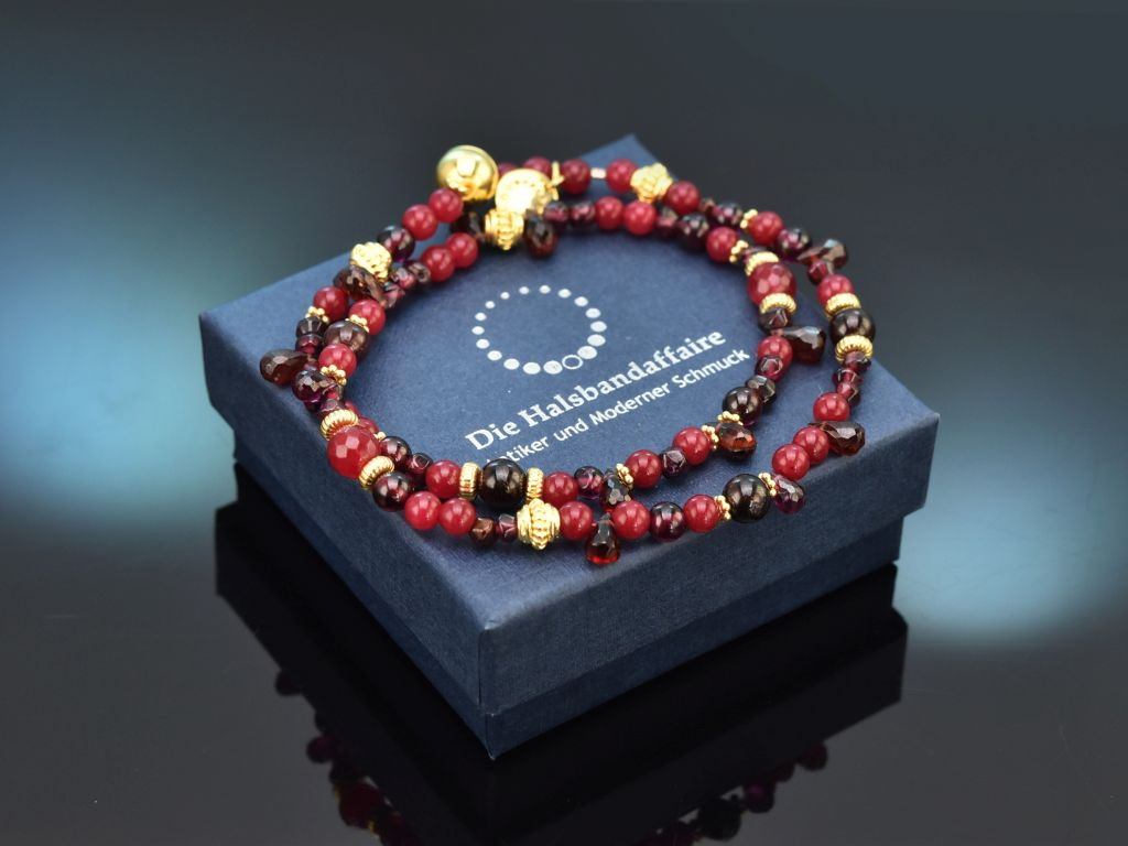The deep red garnets and warm red agate create a harmonious, expressive play of colours with classic elegance. Matching gold-plated decorative elements add elegant, gently shimmering accents and emphasise the bold colours of the bracelet.
