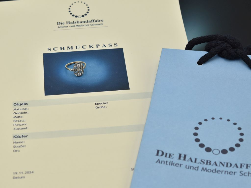 This fine piece of jewellery was created around 1910 and originates from Vienna. It reflects the typical style of the Belle Époque, when delicate floral diamond jewellery made of "white" precious metals was particularly en vogue. Today, this exquisite ring is a particularly elegant testament to the jewellery art of the turn of the last century and would also make a beautiful antique engagement ring.