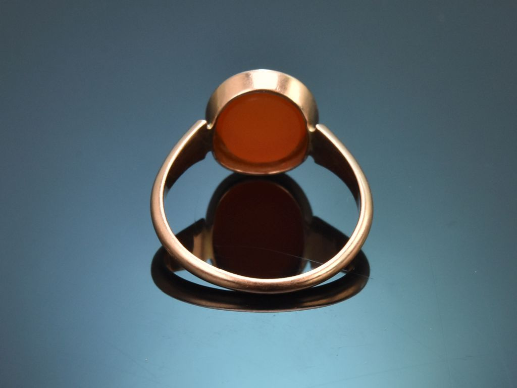 A beautiful antique coat-of-arms signet ring set with carnelian, crafted from 585 rose gold / 14 carat (hallmarked and guaranteed).