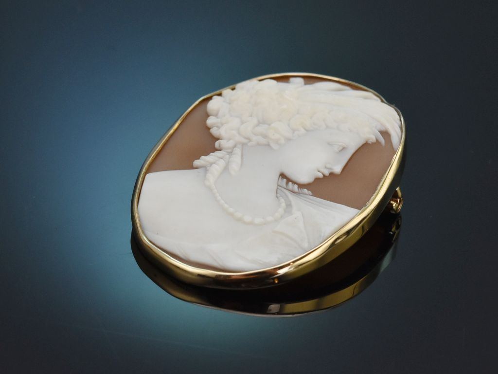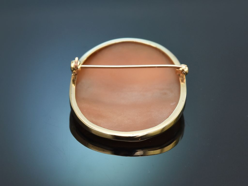 Historische Gemmen Kamee Brosche mit Darstellung der Ceres, gerahmt in Gold 375/ 9 Kt (geprüft und garantiert).