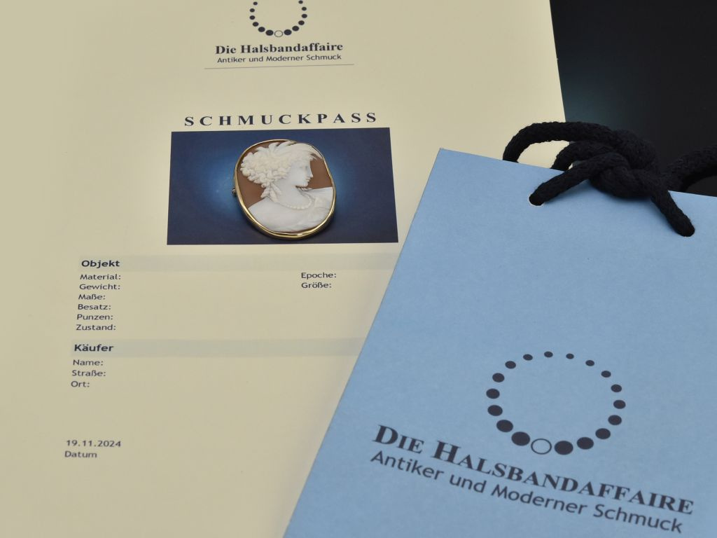 Bitte beachten Sie: Bei Vintage- bzw. Antikschmuckstücken handelt es sich um getragene Objekte, die aufgrund ihrer Historie leichte Tragespuren aufweisen können.