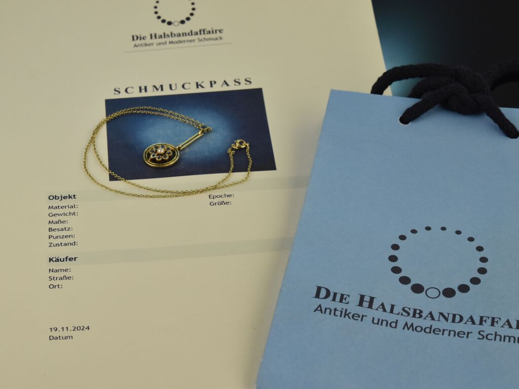 Bitte beachten Sie: Bei Vintage- bzw. Antikschmuckstücken handelt es sich um getragene Objekte, die aufgrund ihrer Historie leichte Tragespuren aufweisen können.