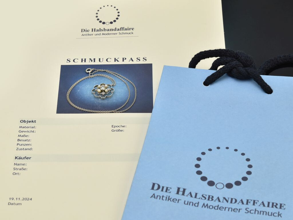 Bitte beachten Sie: Bei Vintage- bzw. Antikschmuckstücken handelt es sich um getragene Objekte, die aufgrund ihrer Historie leichte Tragespuren aufweisen können.