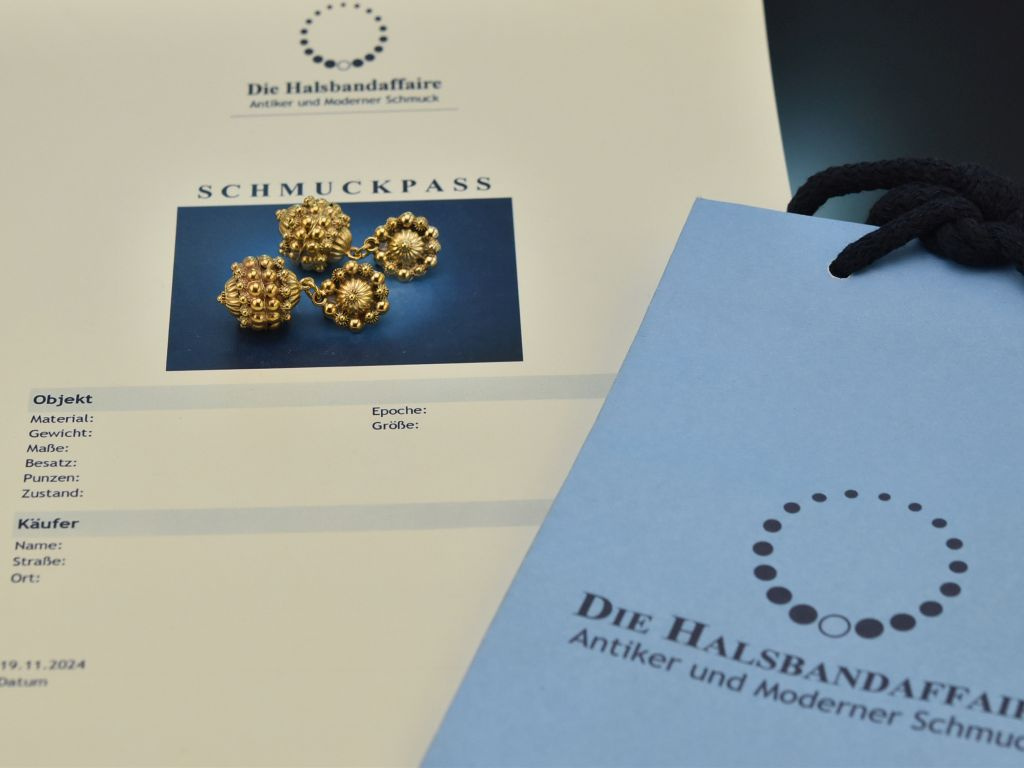 Bitte beachten Sie: Bei Vintage- bzw. Antikschmuckstücken handelt es sich um getragene Objekte, die aufgrund ihrer Historie leichte Tragespuren aufweisen können.