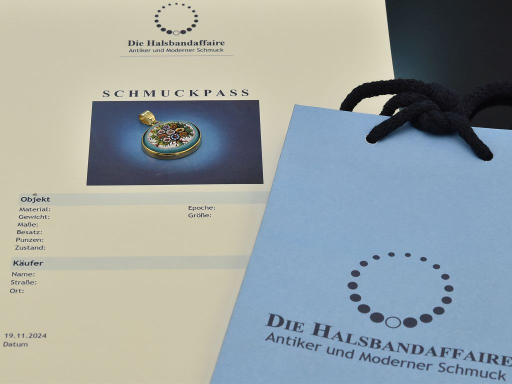 Bitte beachten Sie: Bei Vintage- bzw. Antikschmuckstücken handelt es sich um getragene Objekte, die aufrgund ihrer Historie leichte Tragespuren aufweisen können.
