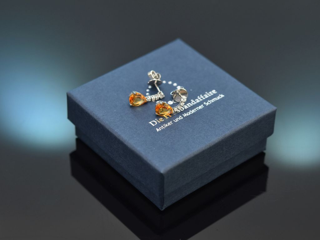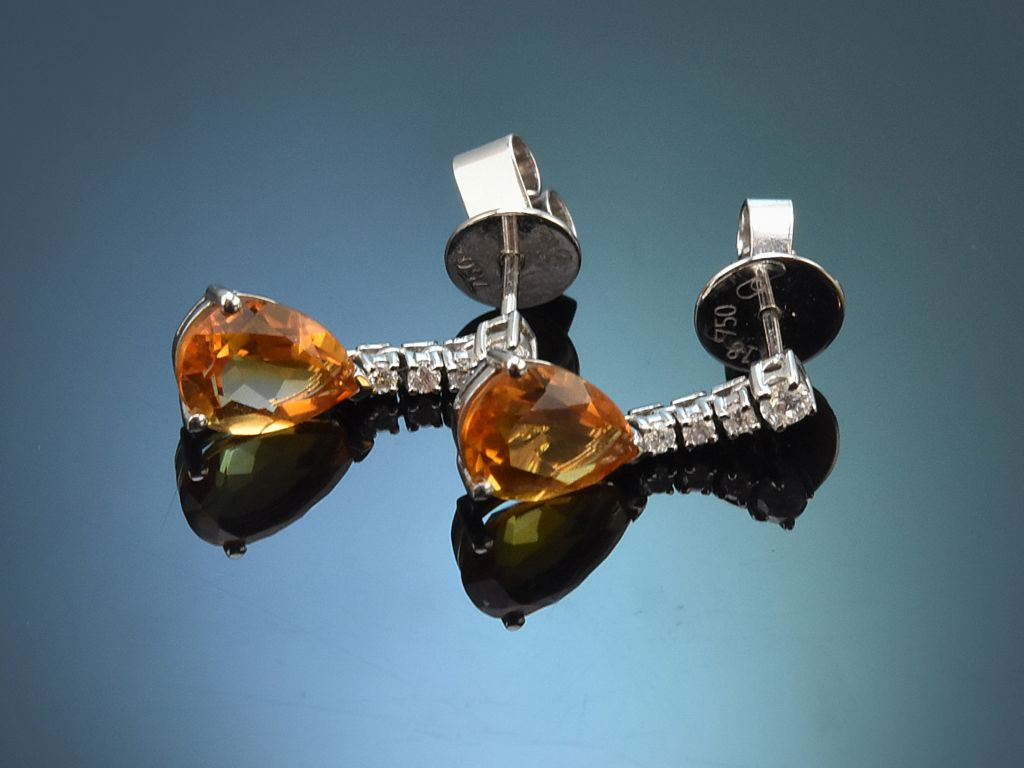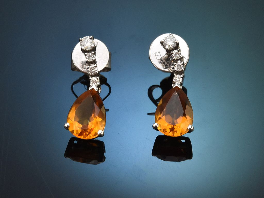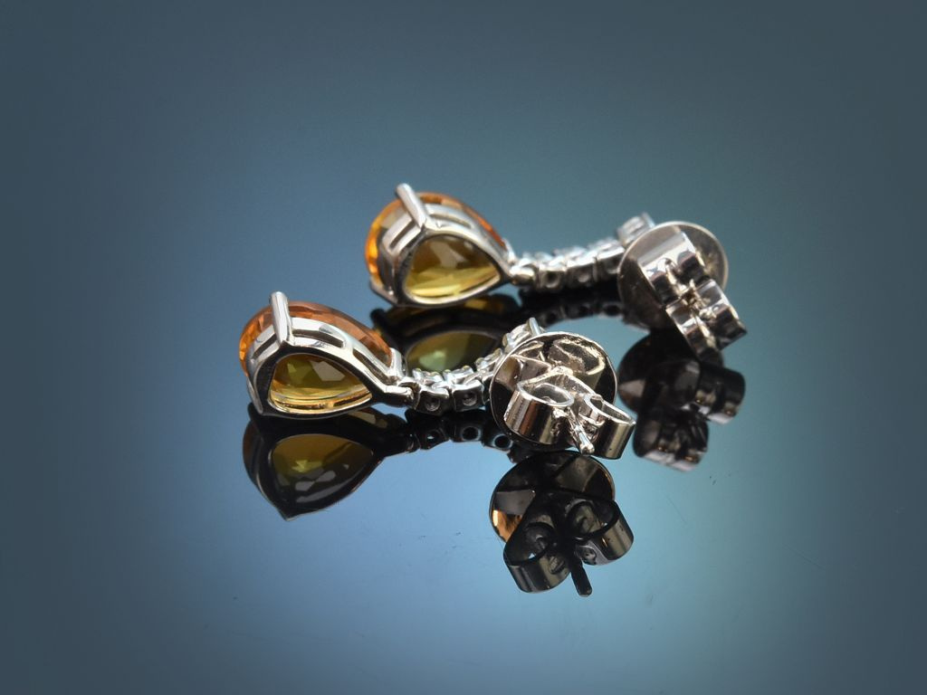 Elegante Citrin Ohrringe mit Diamanten, gearbeitet aus Weißgold 750 / 18 Kt (gestempelt und garantiert).