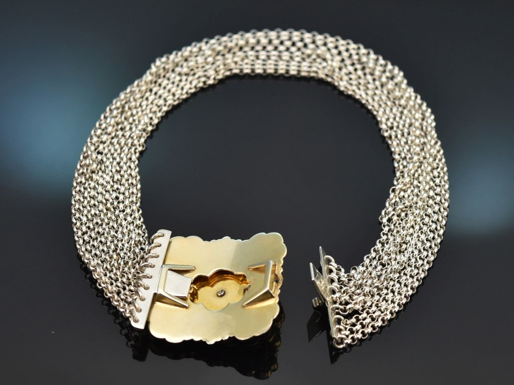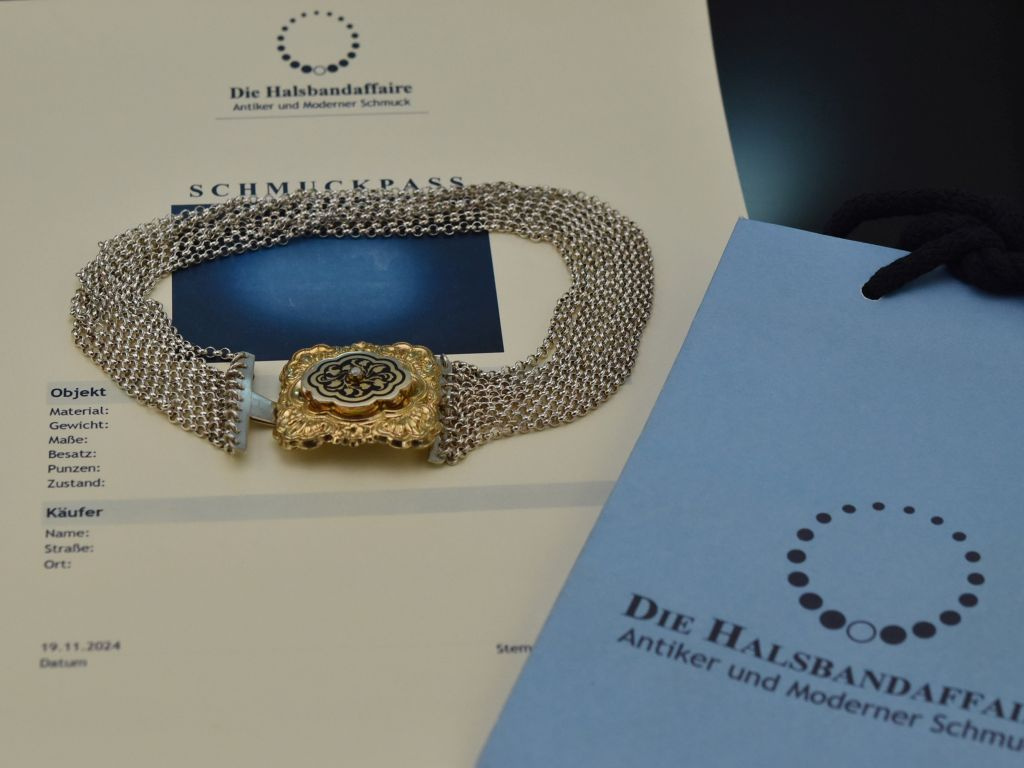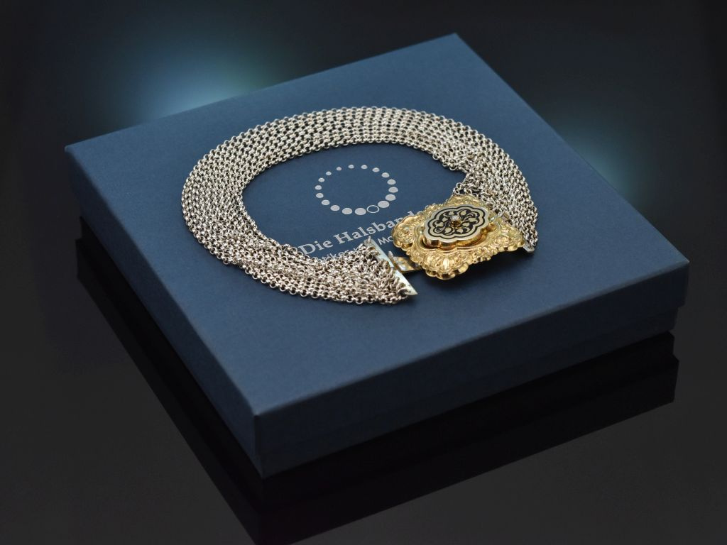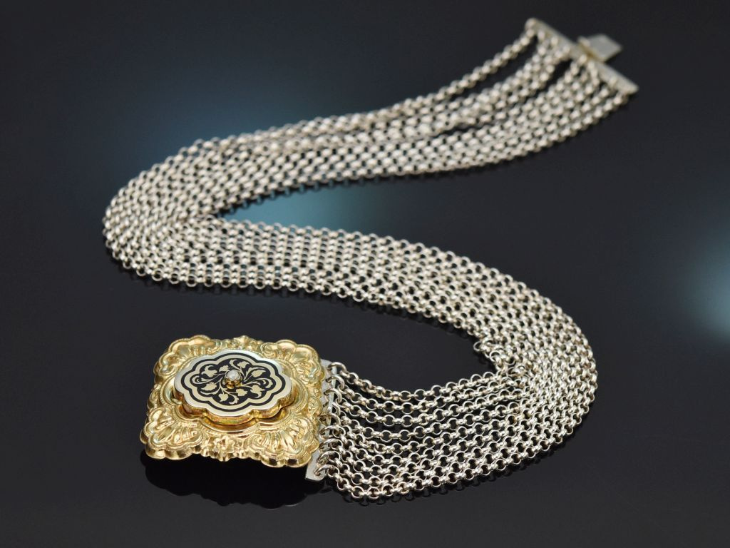 Sehr schöne historische, neunreihige Trachten Kropf Kette aus teilvergoldetem Silber und Emaille (geprüft und garantiert).